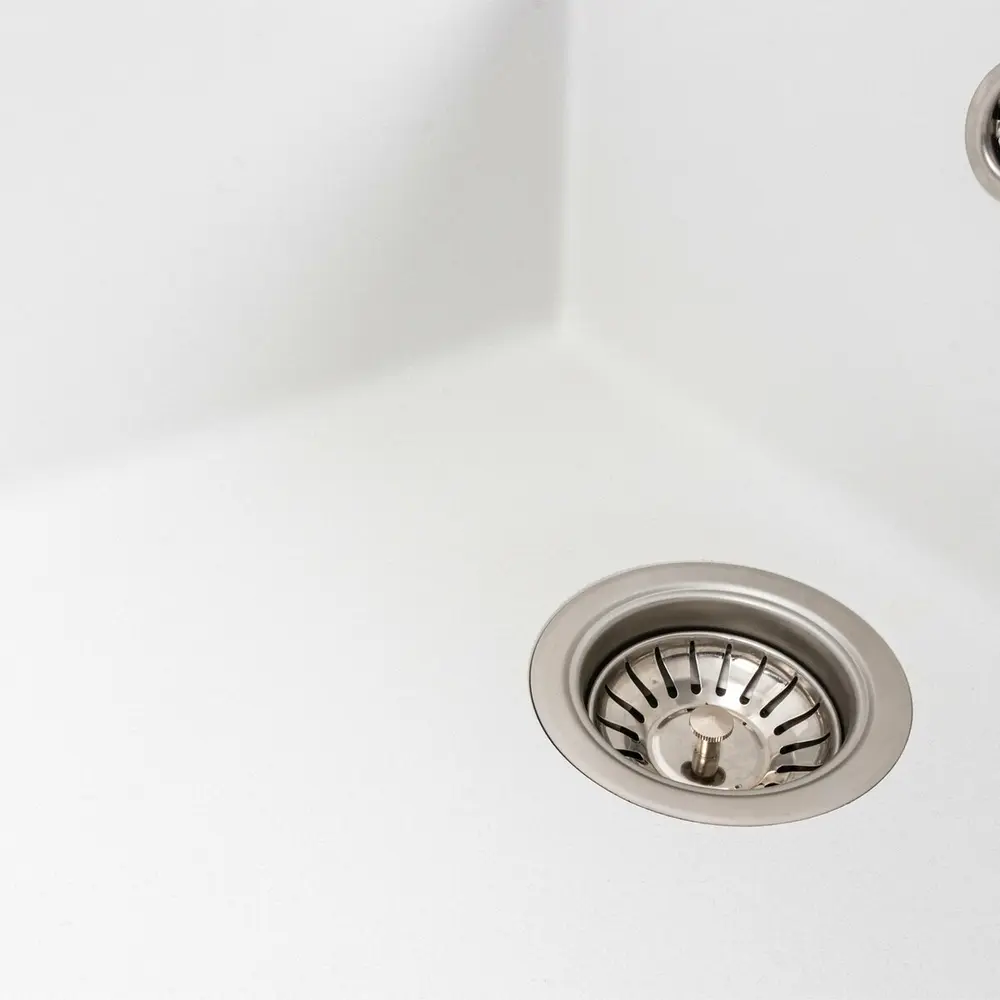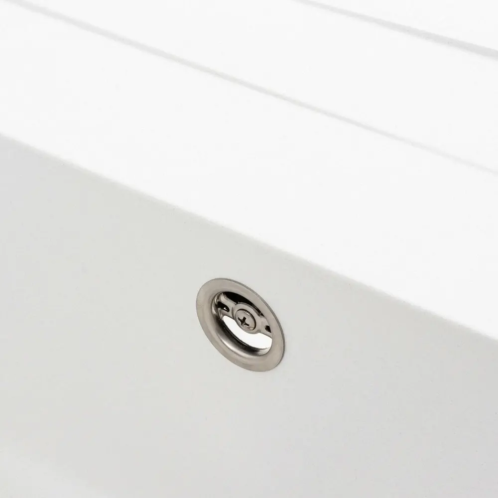 Мойка имеет матовую фактуру и приятный для глаза цвет – белый, что позволяет ей легко вписаться в интерьер кухни.
