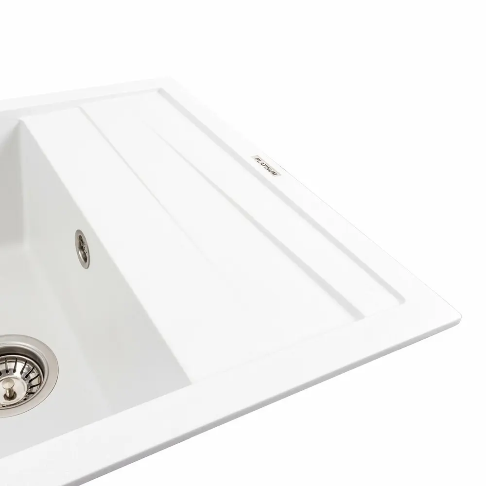 Гранитная мойка для кухни 7050 CASCADA цвета Белая украинского бренда Platinum – это стильная, врезная, прямоугольная мойка, которая своим видом прекрасно дополнит дизайн вашей кухни. Мойка на 80% состоит из кварца и на 20% из очень жесткой акриловой смолы, благодаря чему неприхотлива в уходе, а также имеет большой запас прочности.
