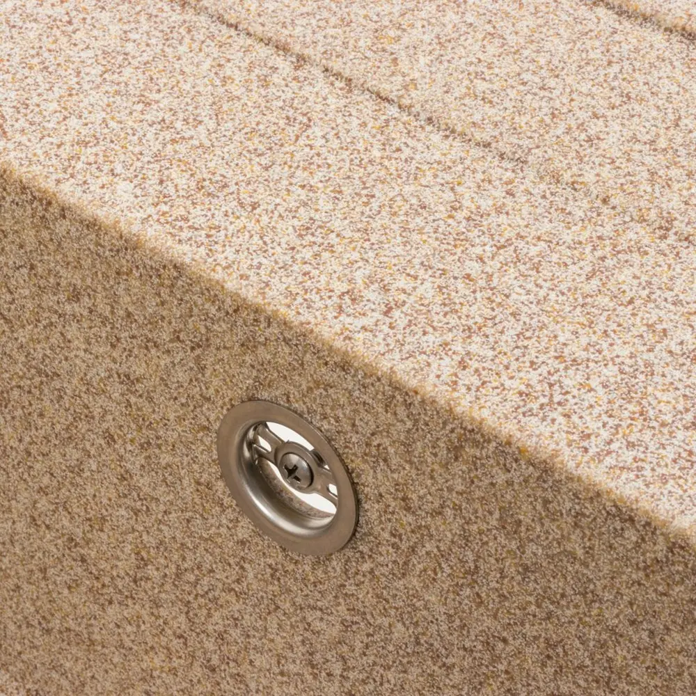 Мойка имеет матовую фактуру и приятный для глаза цвет-карамель, что позволяет ей легко вписаться в интерьер кухни.