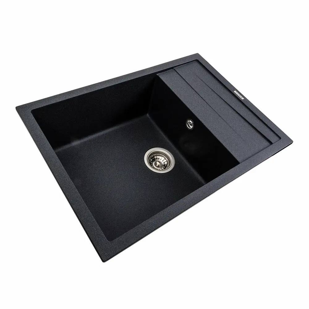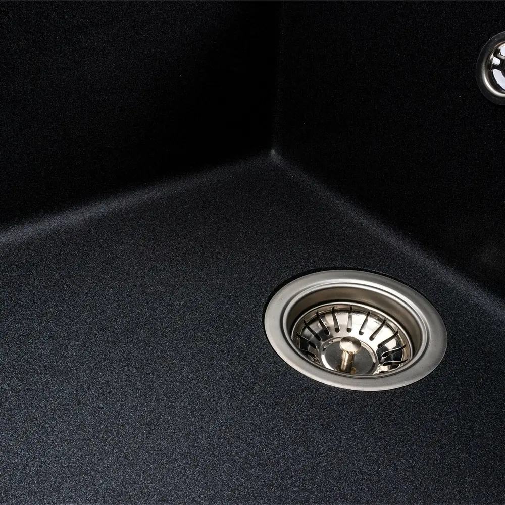 Мойка имеет матовую фактуру и приятный для глаза цвет – карбон, что позволяет ей легко вписаться в интерьер кухни.
