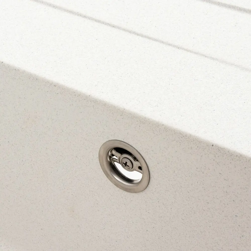 Мойка имеет матовую фактуру и приятный для глаза цвет – белый в точку, что позволяет ей легко вписаться в интерьер кухни.