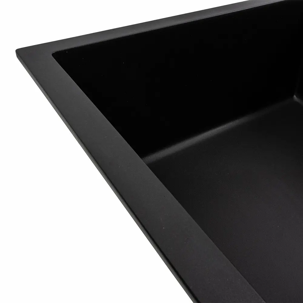 Мойка имеет матовую фактуру и приятный для глаза цвет – черная, что позволяет ей легко вписаться в интерьер кухни.