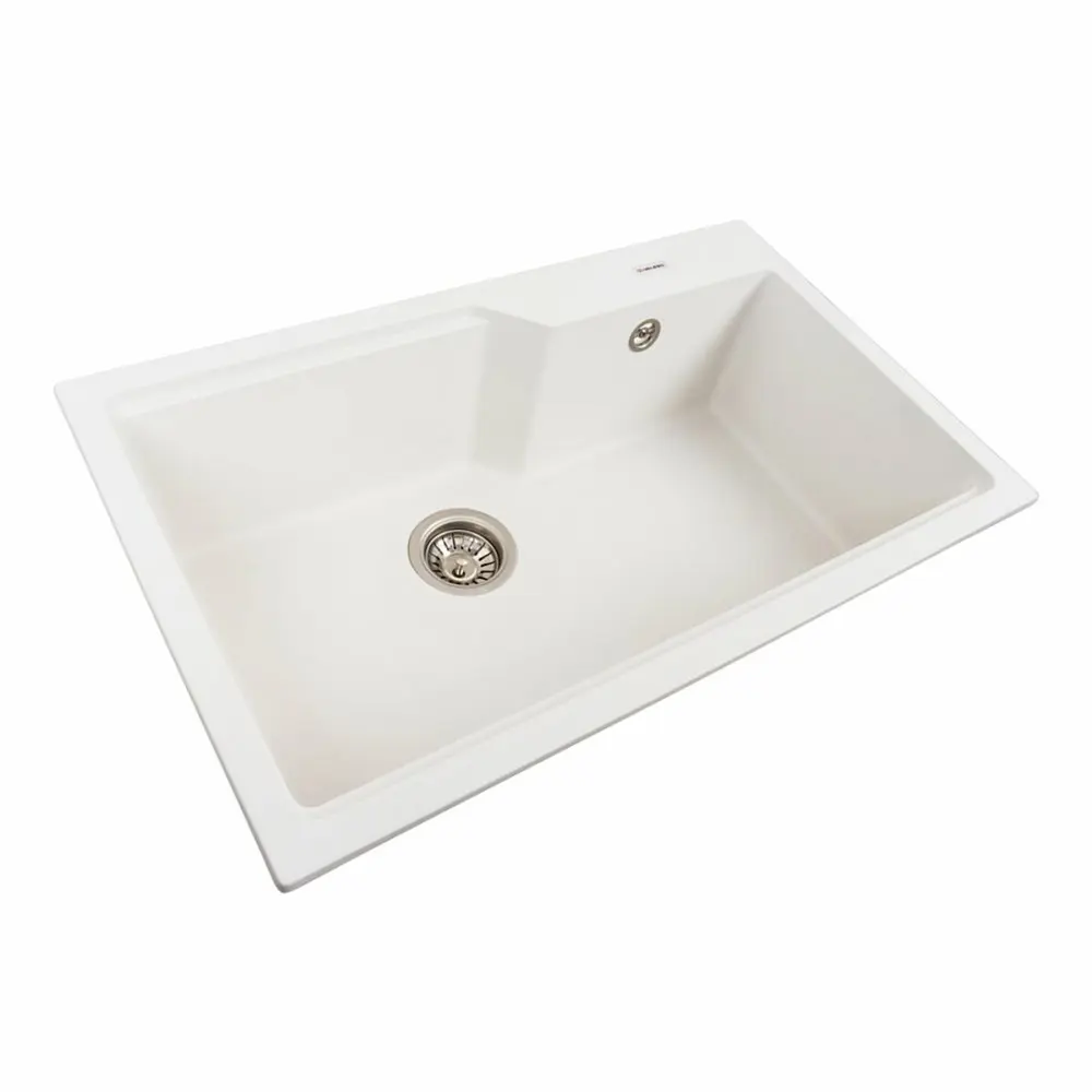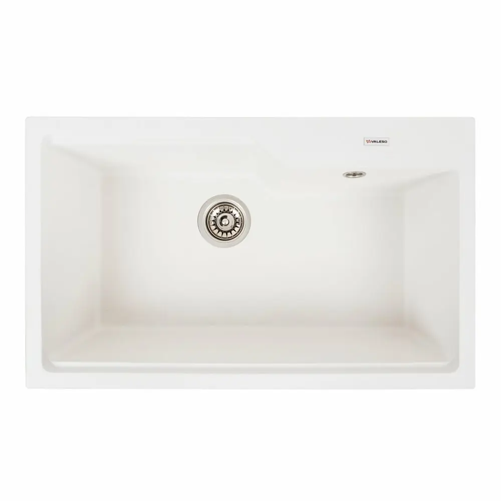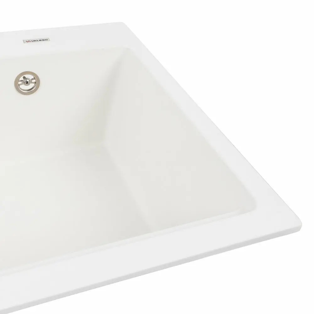 Гранитная мойка для кухни 7545 NIKA цвета Белая украинского бренда VALESO – это стильная, врезная, прямоугольная мойка, которая своим видом прекрасно дополнит дизайн вашей кухни. Мойка на 80% состоит из кварца и на 20% из очень жесткой акриловой смолы, благодаря чему неприхотлива в уходе, а также имеет большой запас прочности.