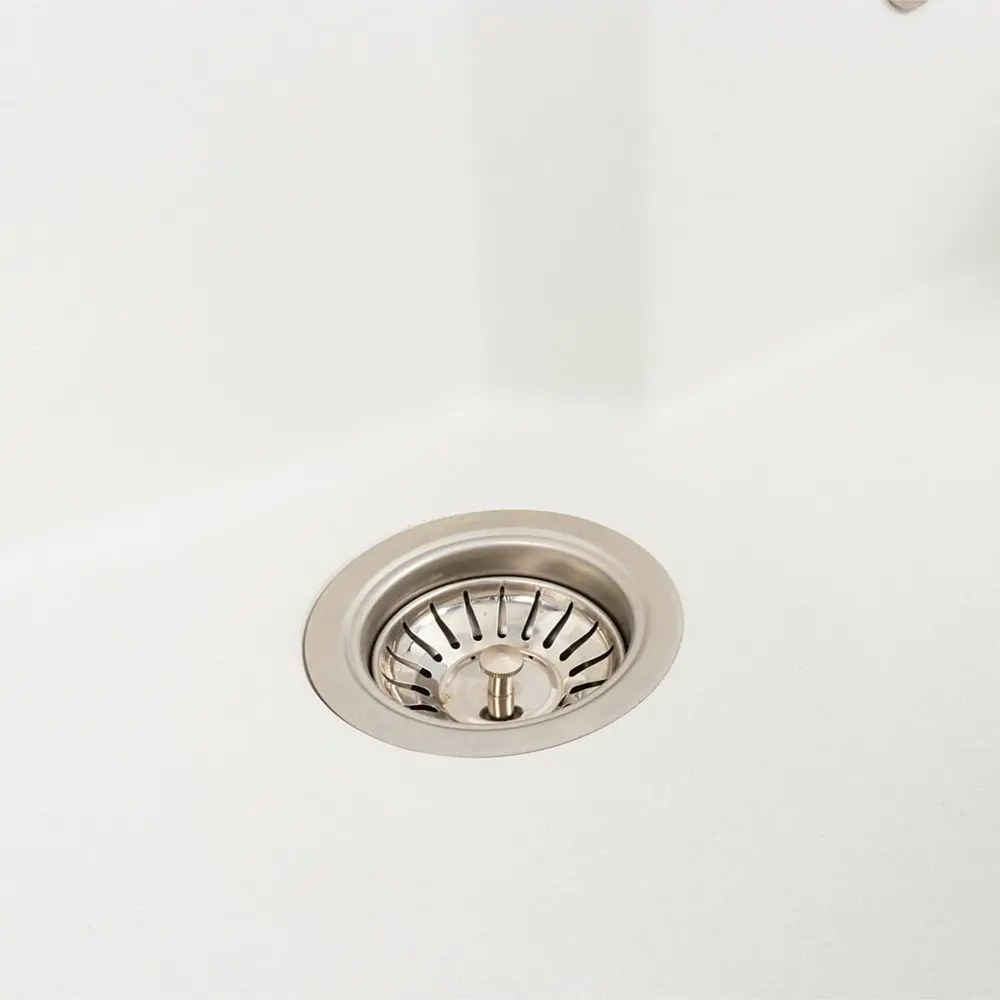 Мойка имеет матовую фактуру и приятный для глаза цвет – белый, что позволяет ей легко вписаться в интерьер кухни.