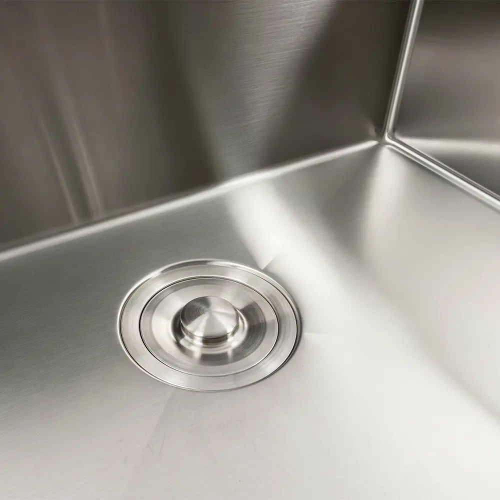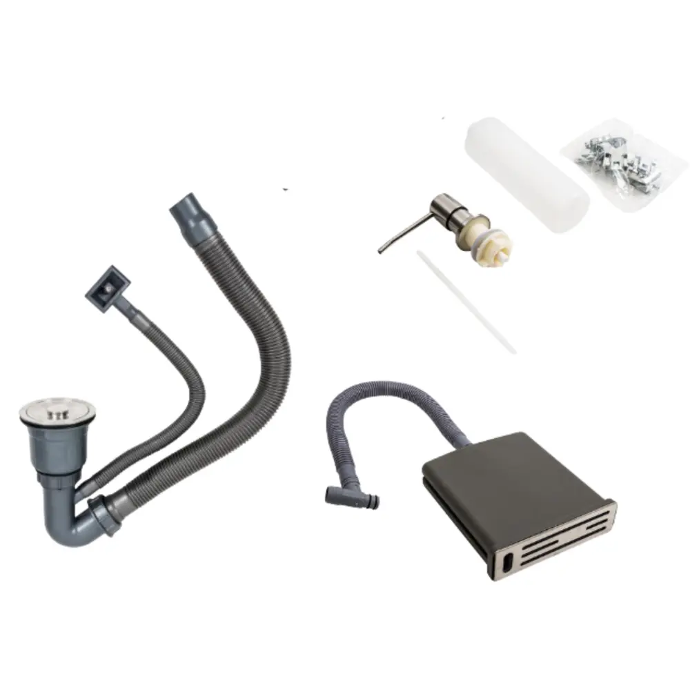 Кухонная мойка оборудована двумя отверстиями под смеситель и дозатор, что обеспечивает удобство использования. Подставка для ножей придает практичности и организованности вашему рабочему пространству.