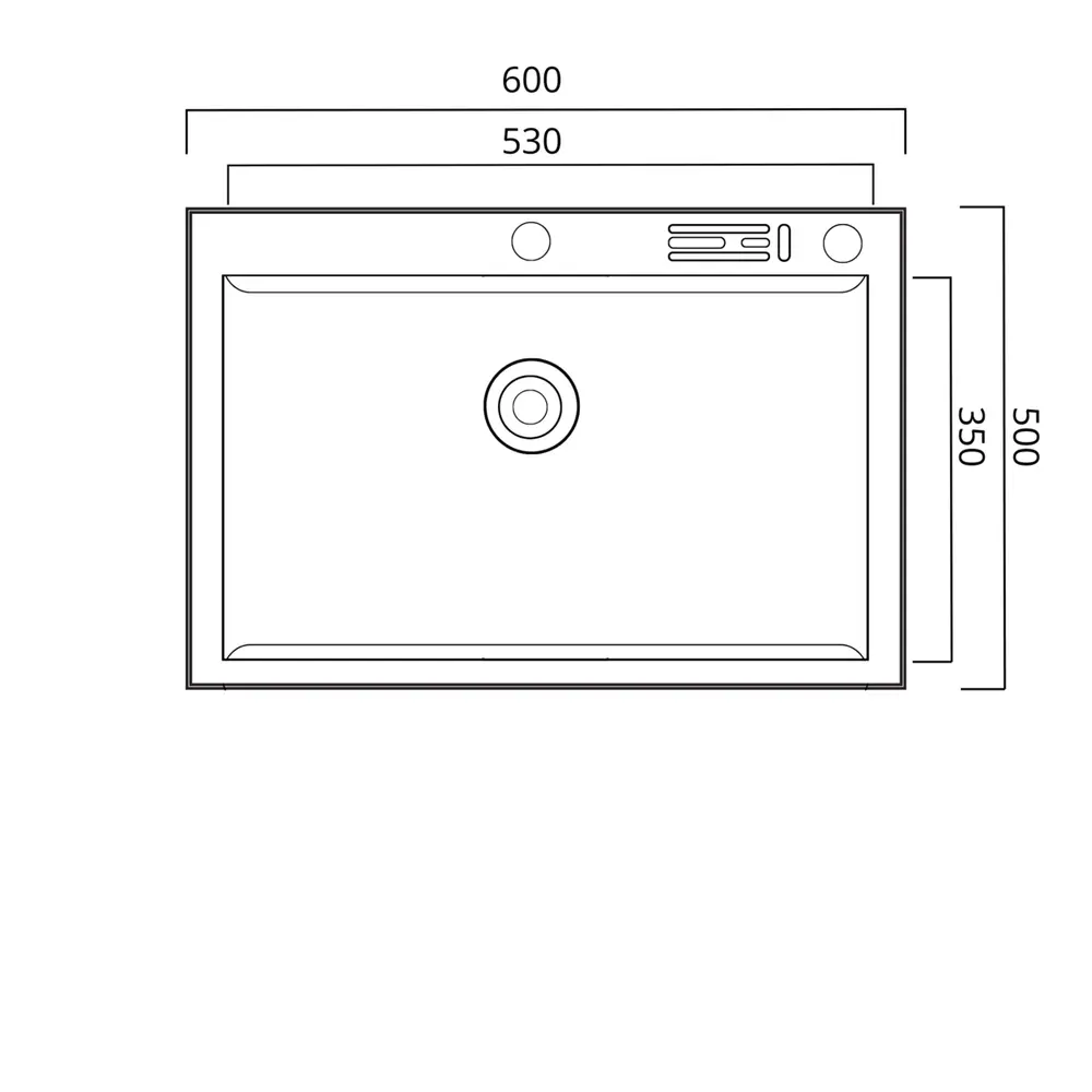 С размерами 600х500х210мм и размером чаши 530х350х210мм, эта мойка станет идеальным решением для любой кухни, предоставляя достаточно места для мытья и обработки продуктов. Изготовлена из высококачественного нержавеющего металла SUS201 и толщиной стали 3,0/0,8мм, она гарантирует прочность и долговечность.