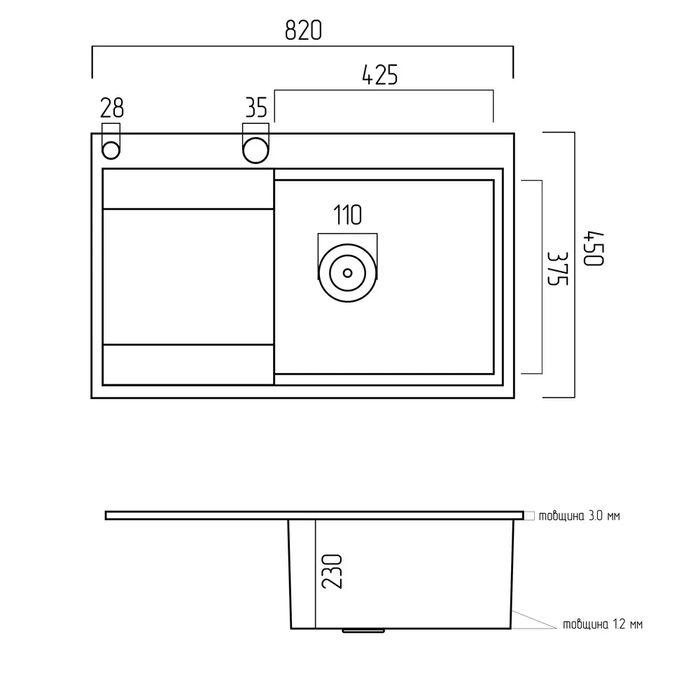 Мийка для кухні Platinum виготовлена з нержавіючої сталі, що гарантує її довговічність. Така кухонна мийка не боїться високих температур та впливу засобів побутової хімії.