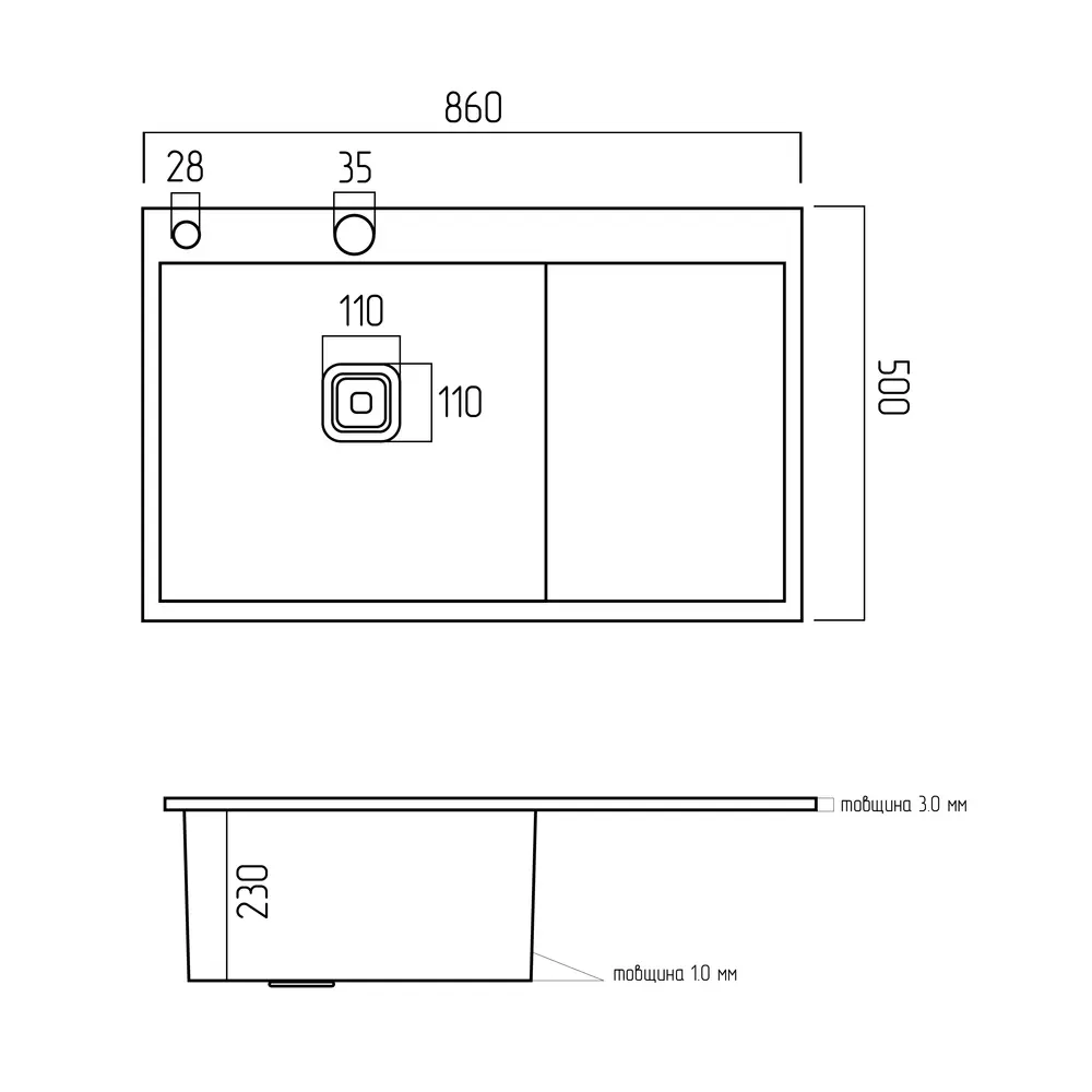 Мийка для кухні Platinum виготовлена з нержавіючої сталі, що гарантує її довговічність. Така кухонна мийка не боїться високих температур та впливу засобів побутової хімії.