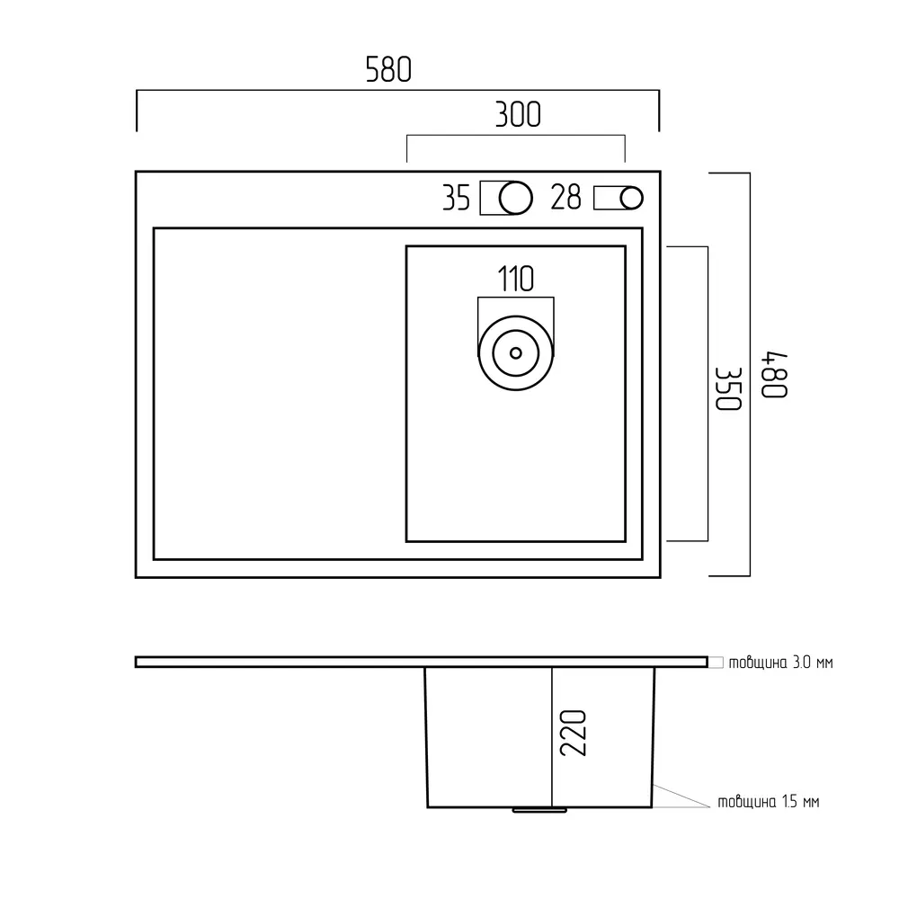 Мийка має чашу глибиною 220 мм, що забезпечує зручність щоденного використання. Тип встановлення – врізна.
