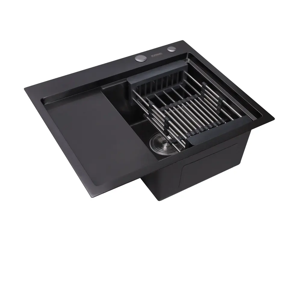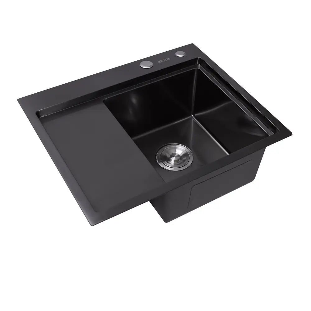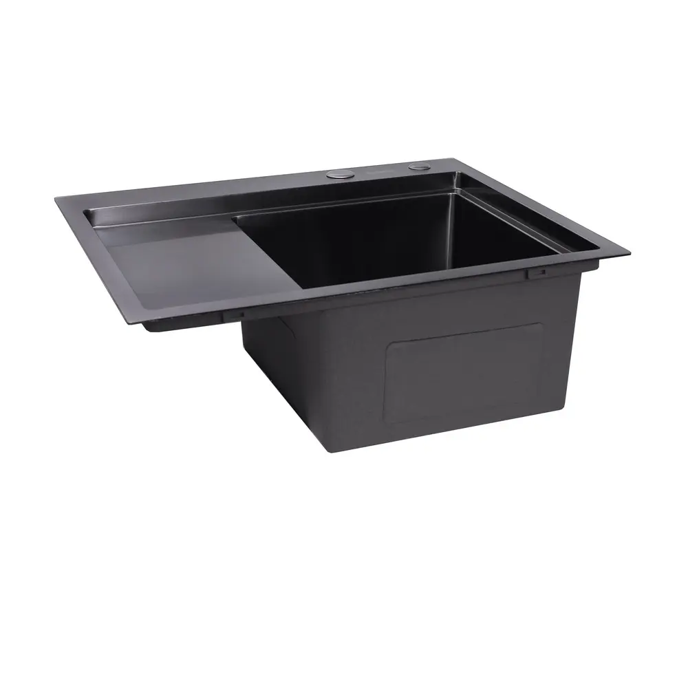 Кухонна мийка Platinum Handmade 58*48 PVD (чорна) це відмінне стильне рішення для кухні невеликих та середніх розмірів. Лаконічний дизайн прямокутної форми добре пасує різним інтер’єрам кухні.