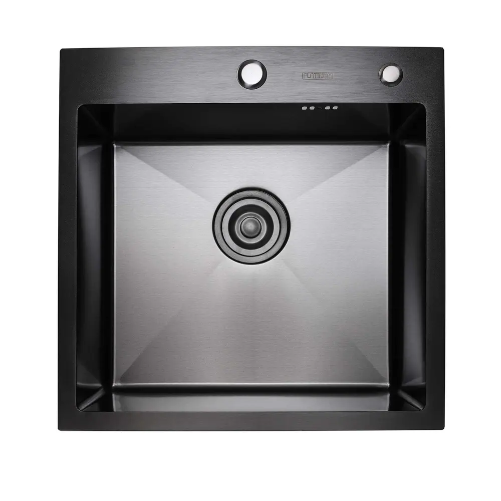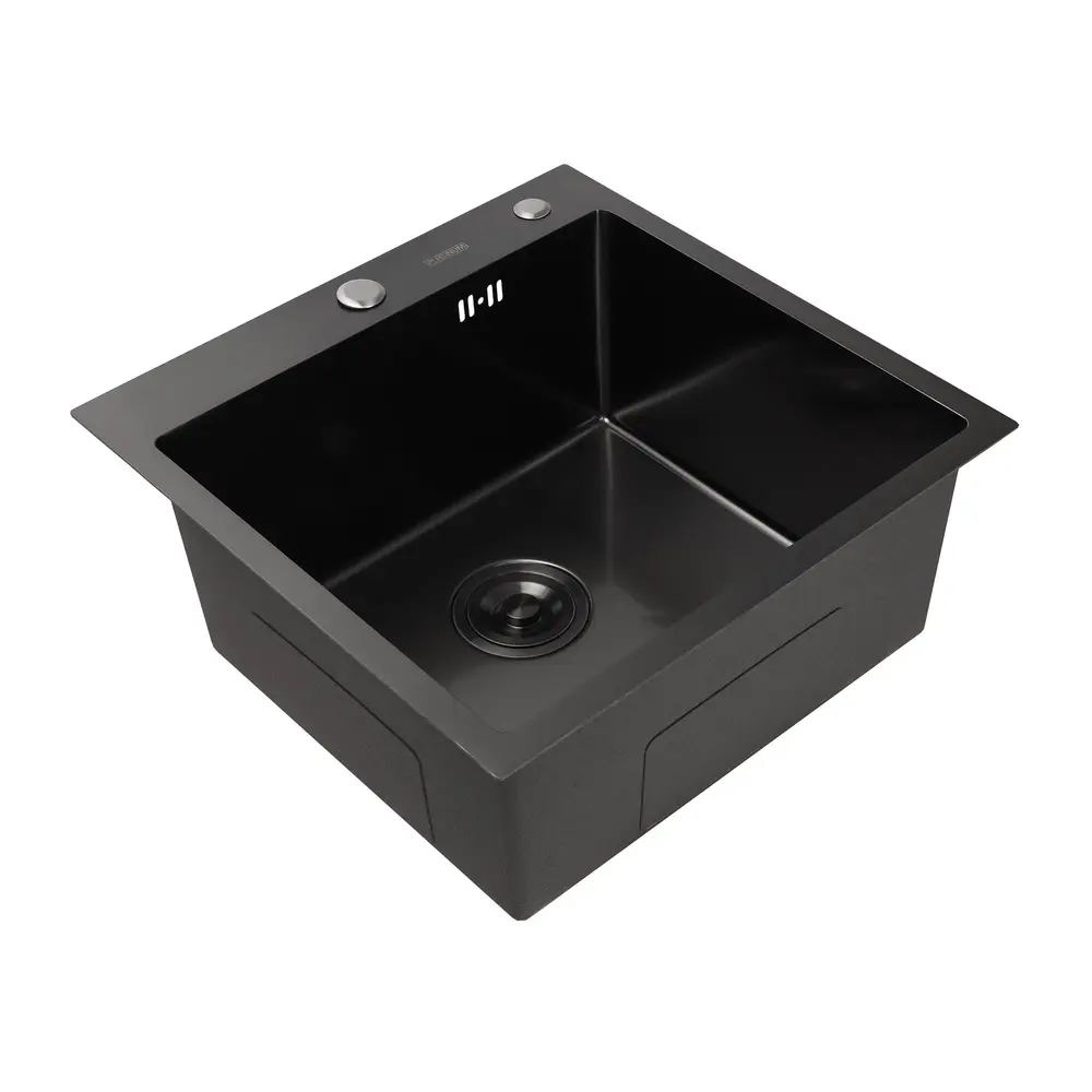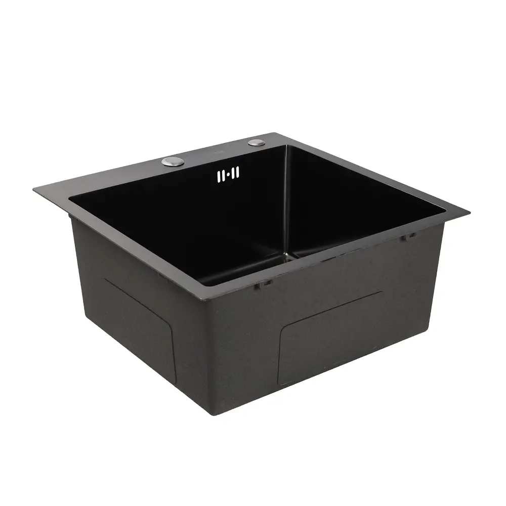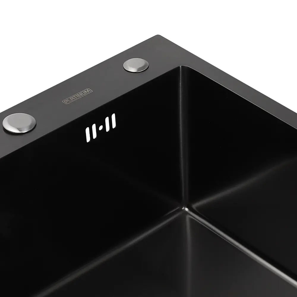 Кухонна мийка Platinum Handmade 50*50 (500x500x220 мм) PVD чорна це відмінне стильне рішення для кухні невеликих розмірів. Лаконічний дизайн прямокутної форми добре пасує різним інтер’єрам кухні.