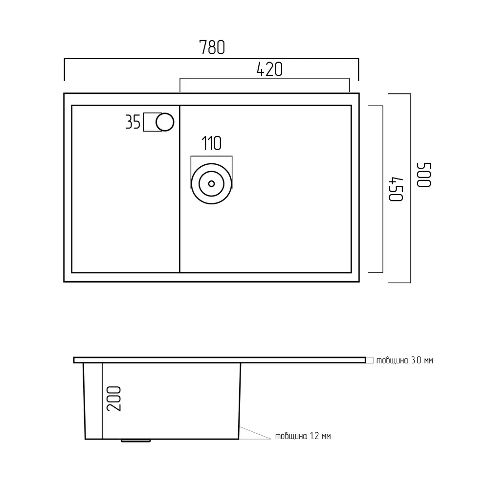 Кухонна мийка Platinum Handmade 78*50 PVD це відмінне стильне рішення для кухні середніх та великих розмірів. Сучасний дизайн прямокутної форми добре пасує різним інтер’єрам кухні. Чаша глибиною 200 мм з великою сушкою забезпечить зручне повсякденне використання мийки.