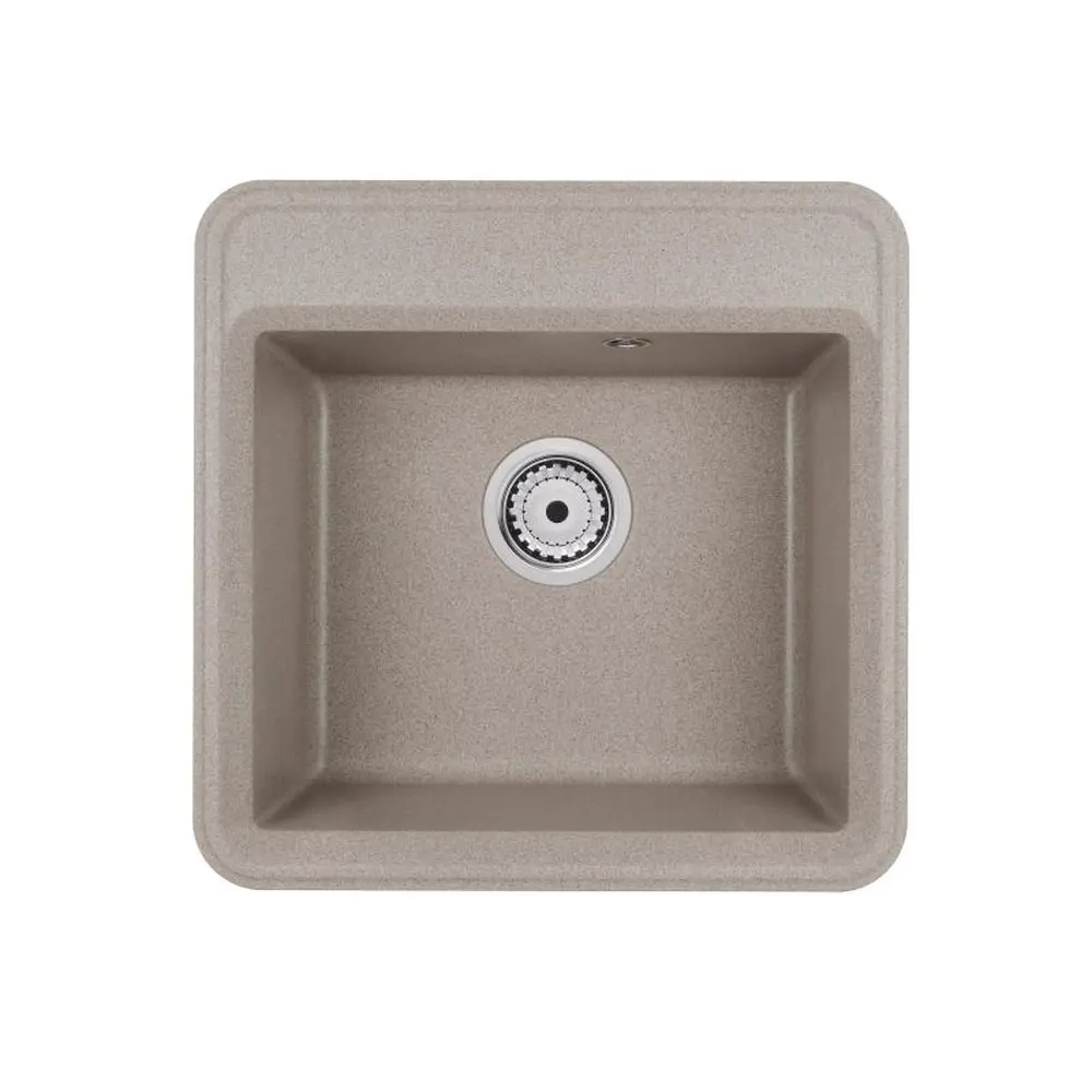 Кухонна мийка Qtap CS 5151 Beige (QTCS5151BEI) виготовлена з якісного штучного каменю з матовою поверхнею. Виріб з такого матеріалу досить стійкий до механічних пошкоджень, а поверхня витримує температурні перепади. Така мийка досить просто очищується від забруднень. Вона має містку прямокутну чашу, зручне компактне крило для сушіння та отвір під перелив. Виріб монтується урізним способом в отвір у стільниці.