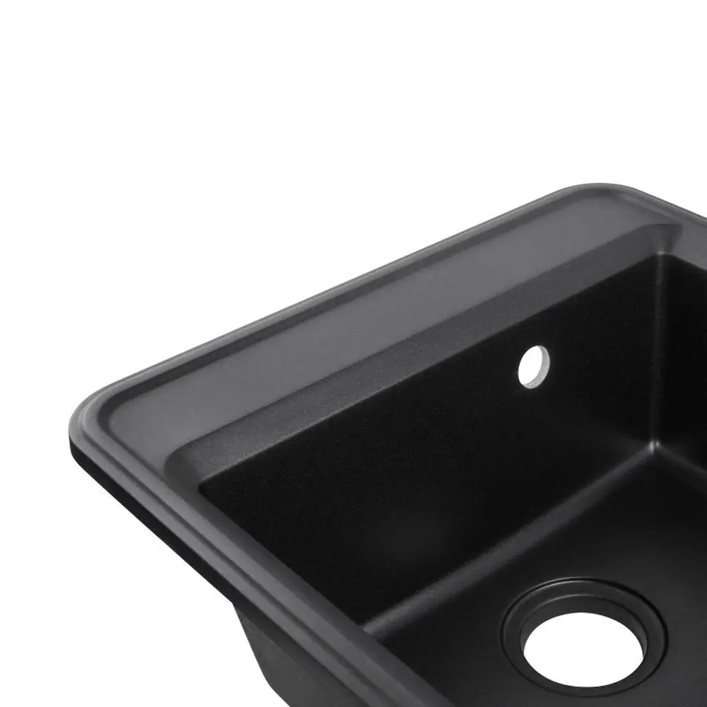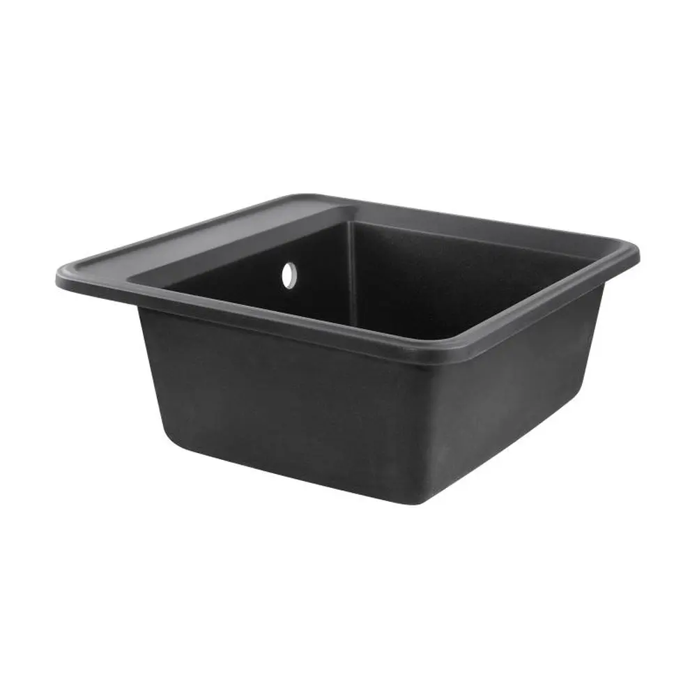 Кухонна мийка Qtap CS 5151 Black (QTCS5151BLA) виготовлена з якісного штучного каменю з матовою поверхнею. Виріб з такого матеріалу досить стійкий до механічних пошкоджень, а поверхня витримує температурні перепади. Така мийка досить просто очищується від забруднень. Вона має містку прямокутну чашу, зручне компактне крило для сушіння та отвір під перелив. Виріб монтується урізним способом в отвір у стільниці.