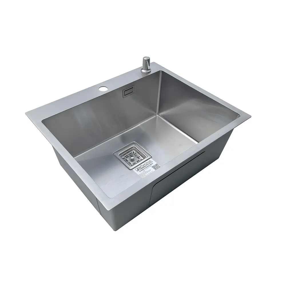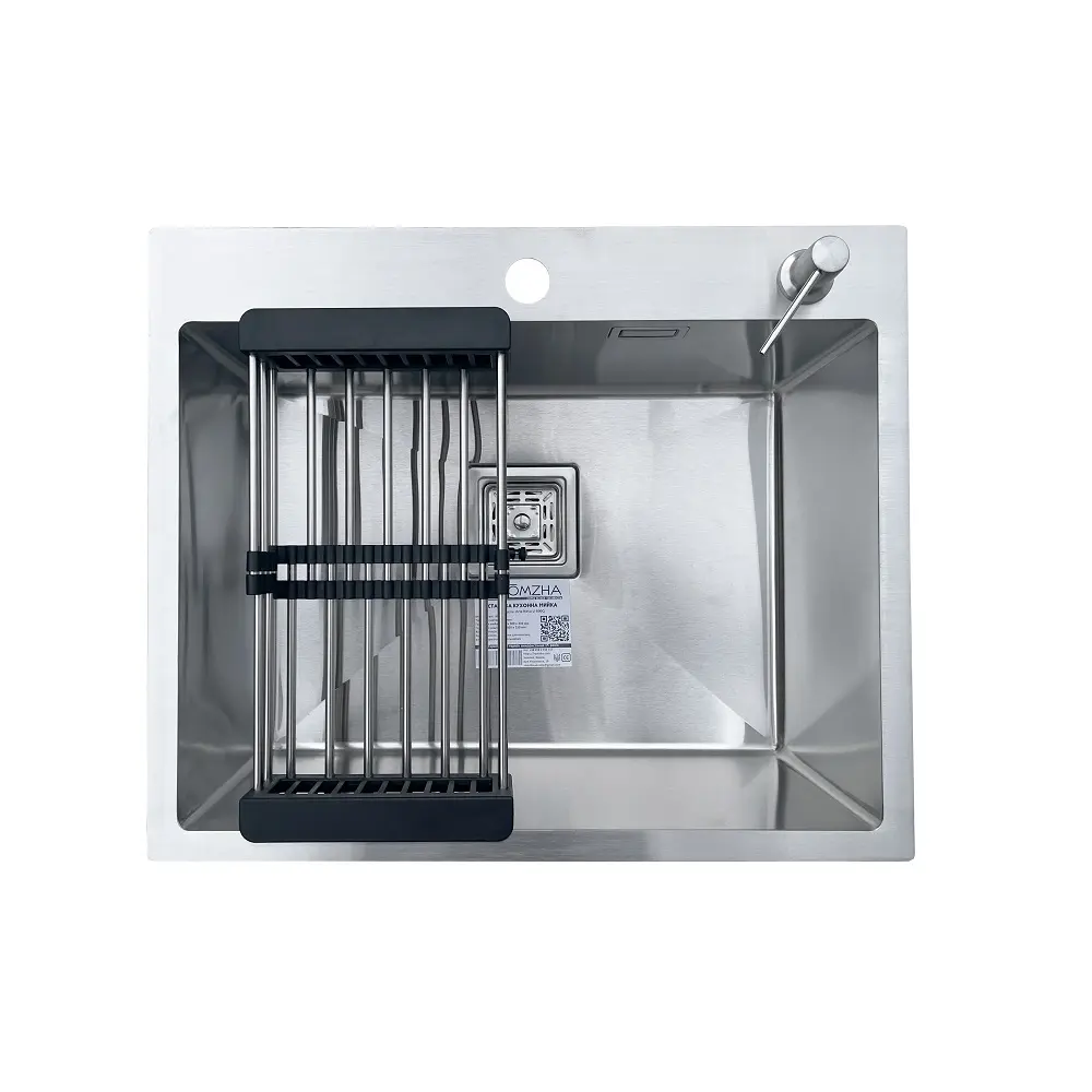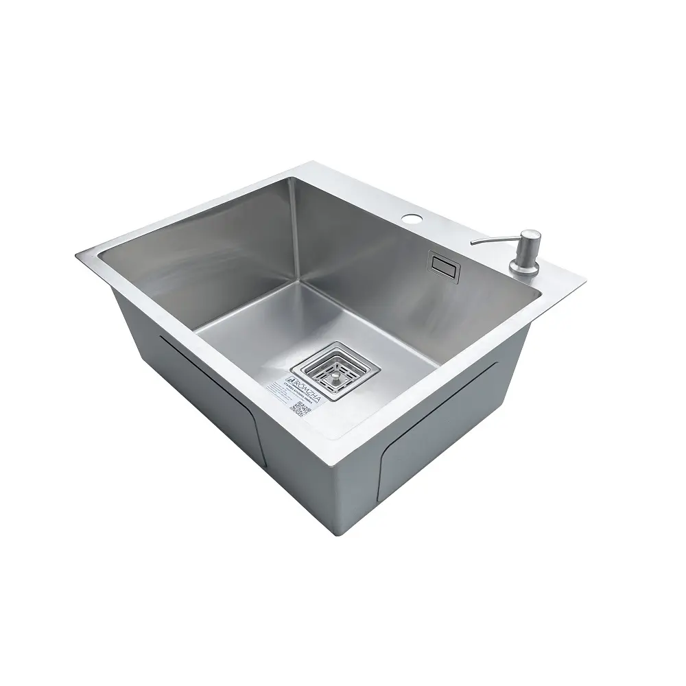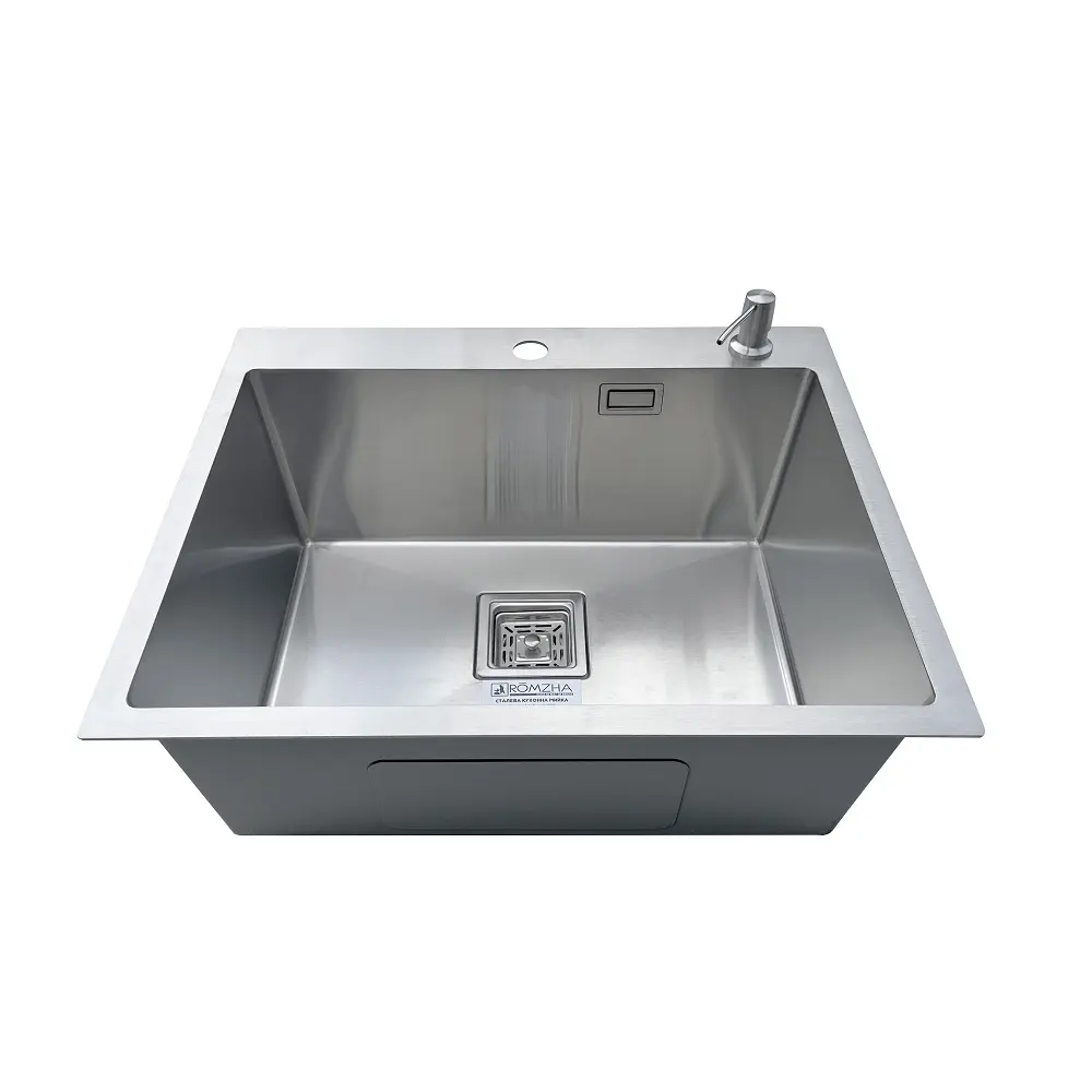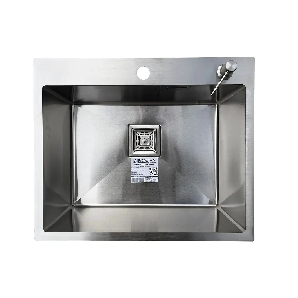 Комплектація: кухонна мийка, сифон, армованний гофро-шланг, корзина з нержавіючої сталі та дозатор для рідкого миючого засобу