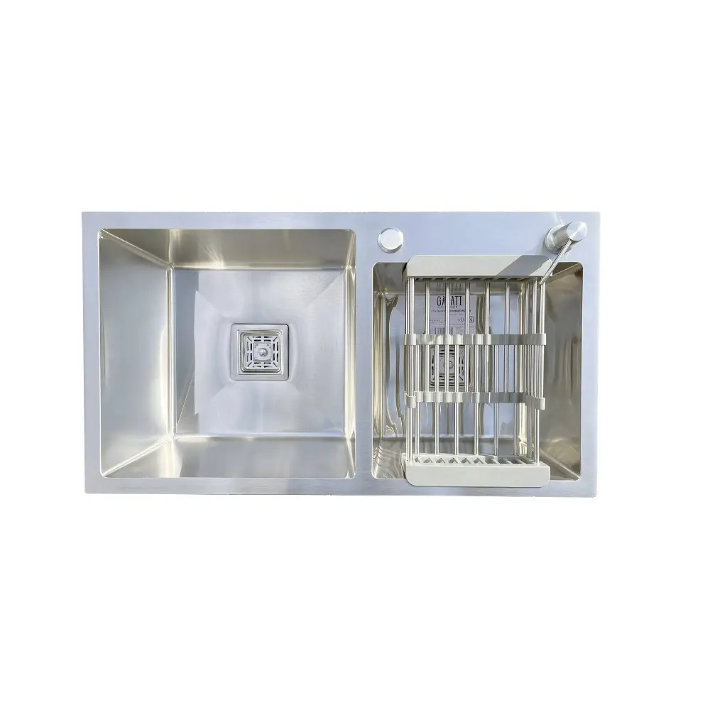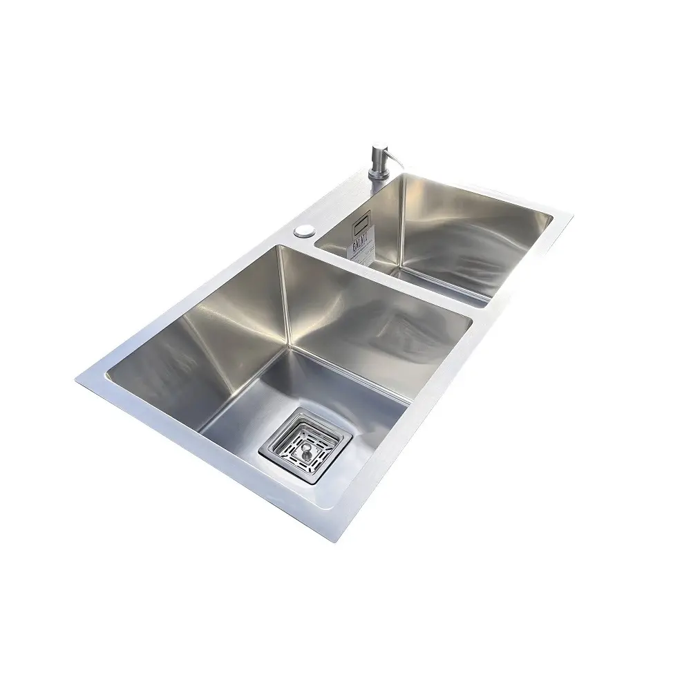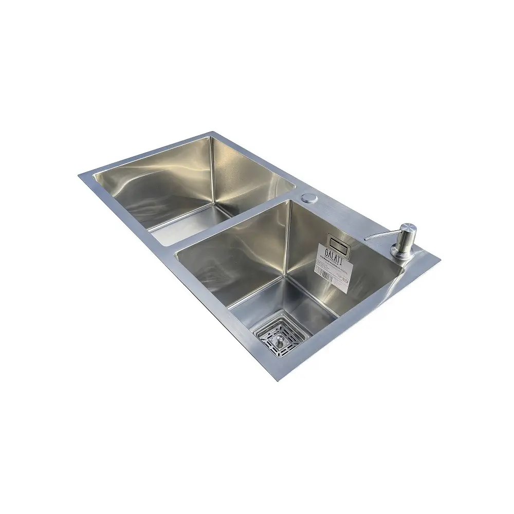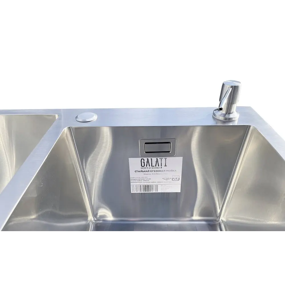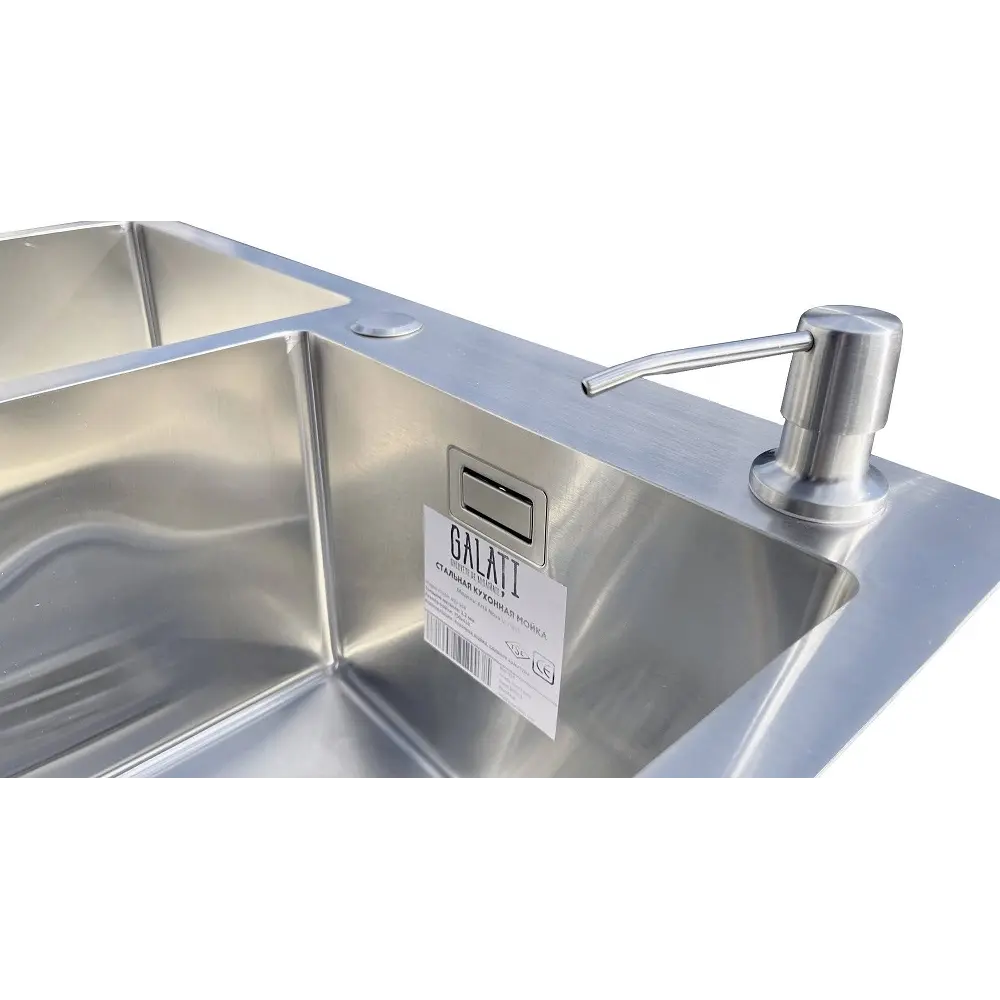 Комплектація: кухонна мийка, сифон, армованний гофро-шланг, корзина з нержавіючої сталі та дозатор для рідкого миючого засобу