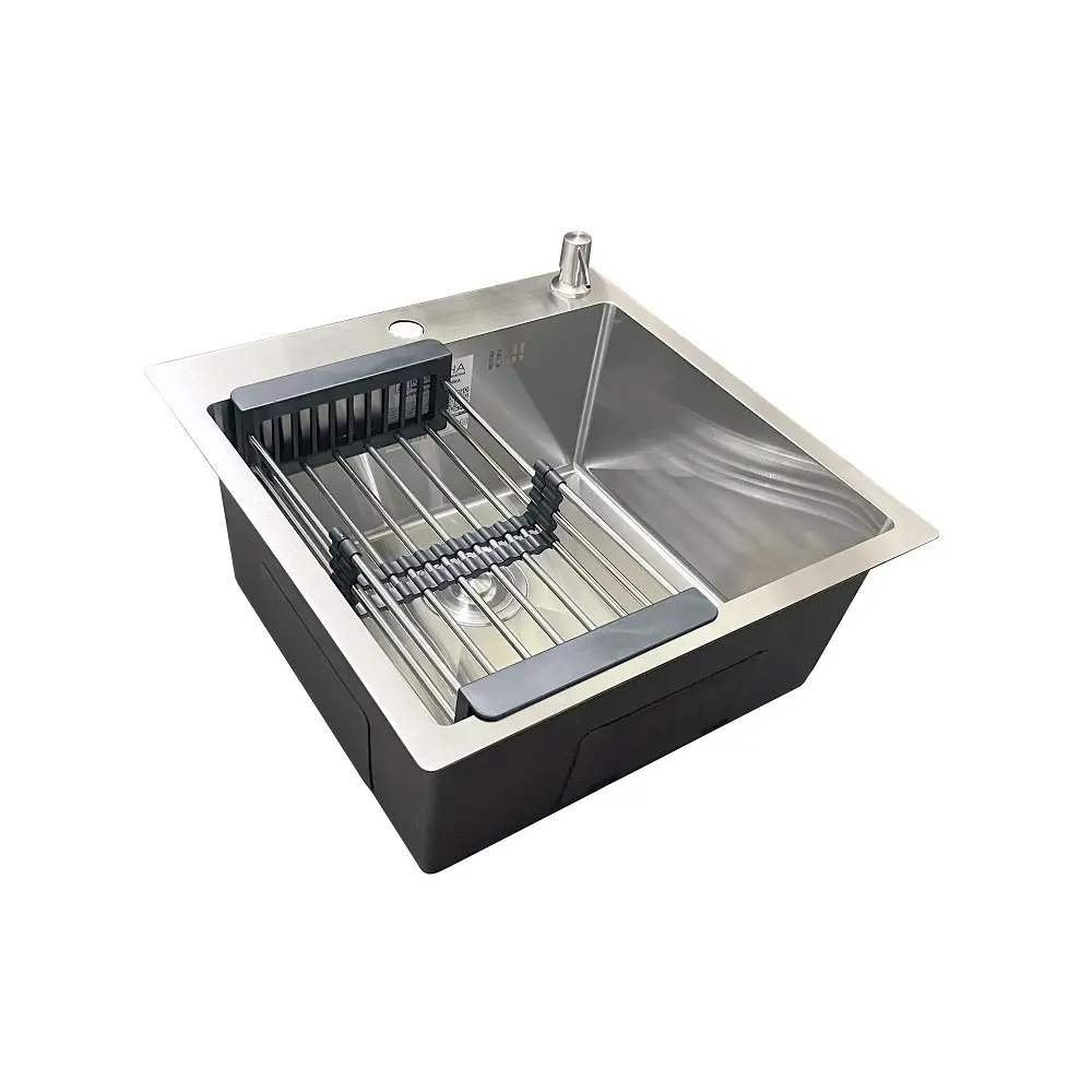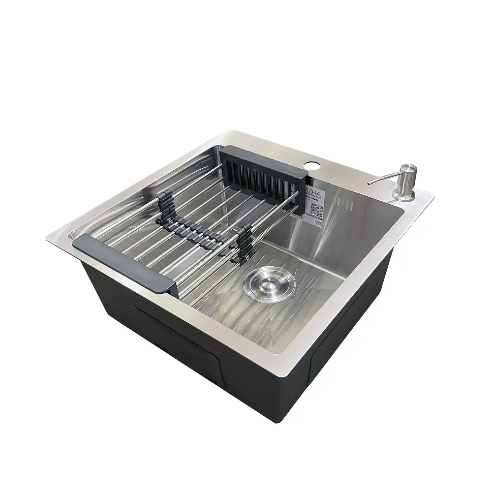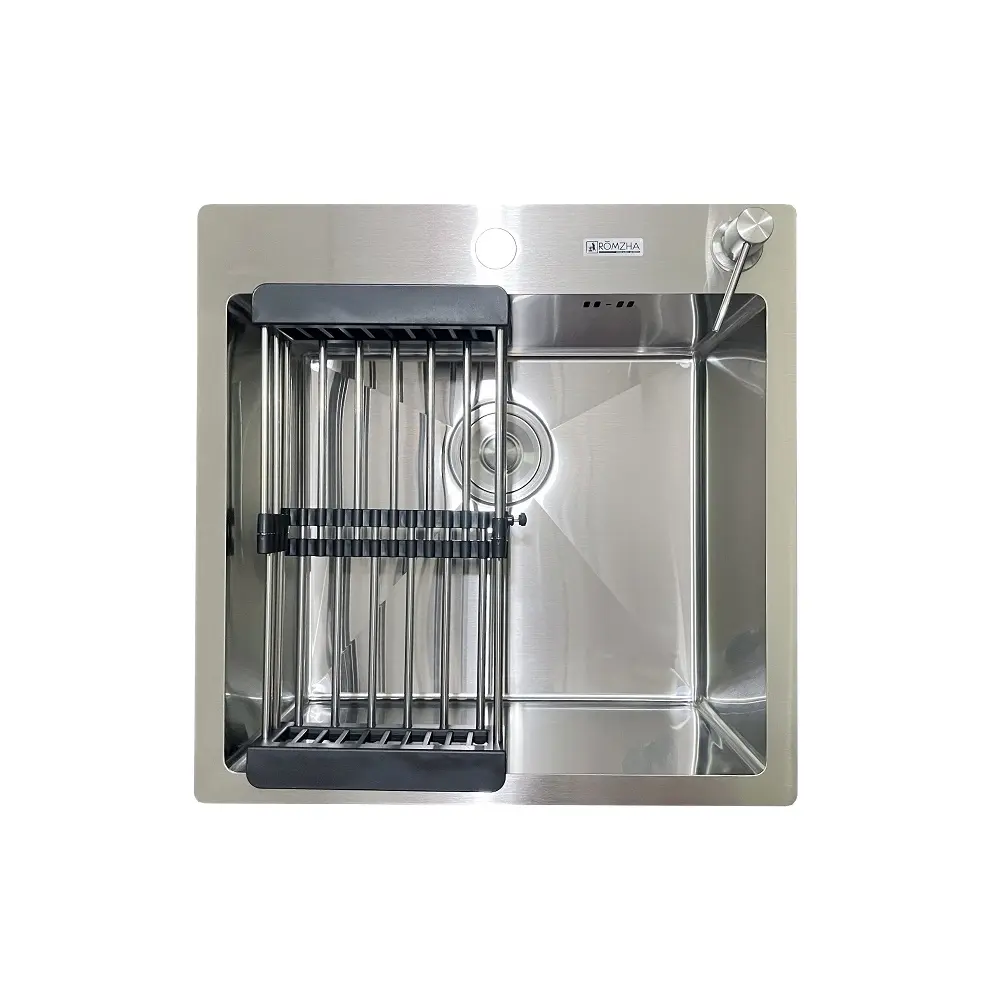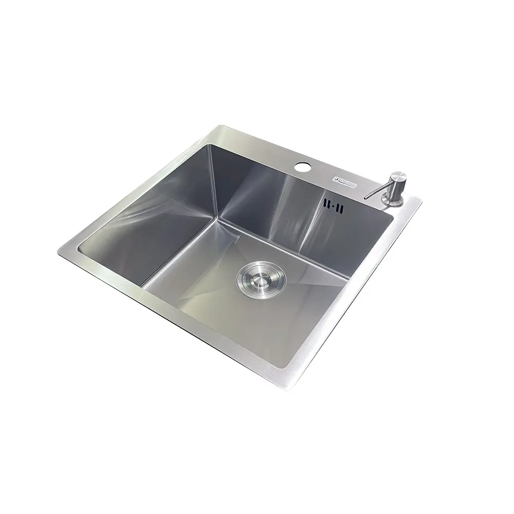 Комплектація: кухонна мийка, сифон, армованний гофро-шланг, корзина з нержавіючої сталі та дозатор для рідкого миючого засобу