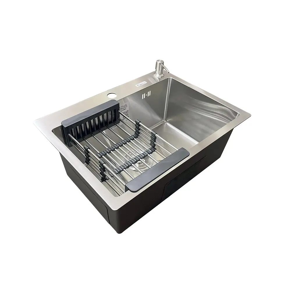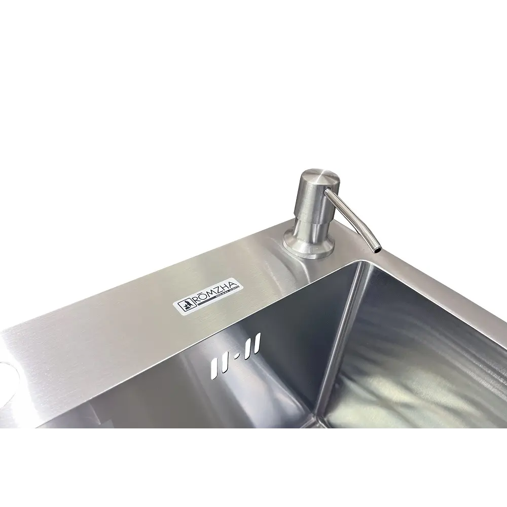 Комплектація: кухонна мийка, сифон, армованний гофро-шланг, корзина з нержавіючої сталі та дозатор для рідкого миючого засобу