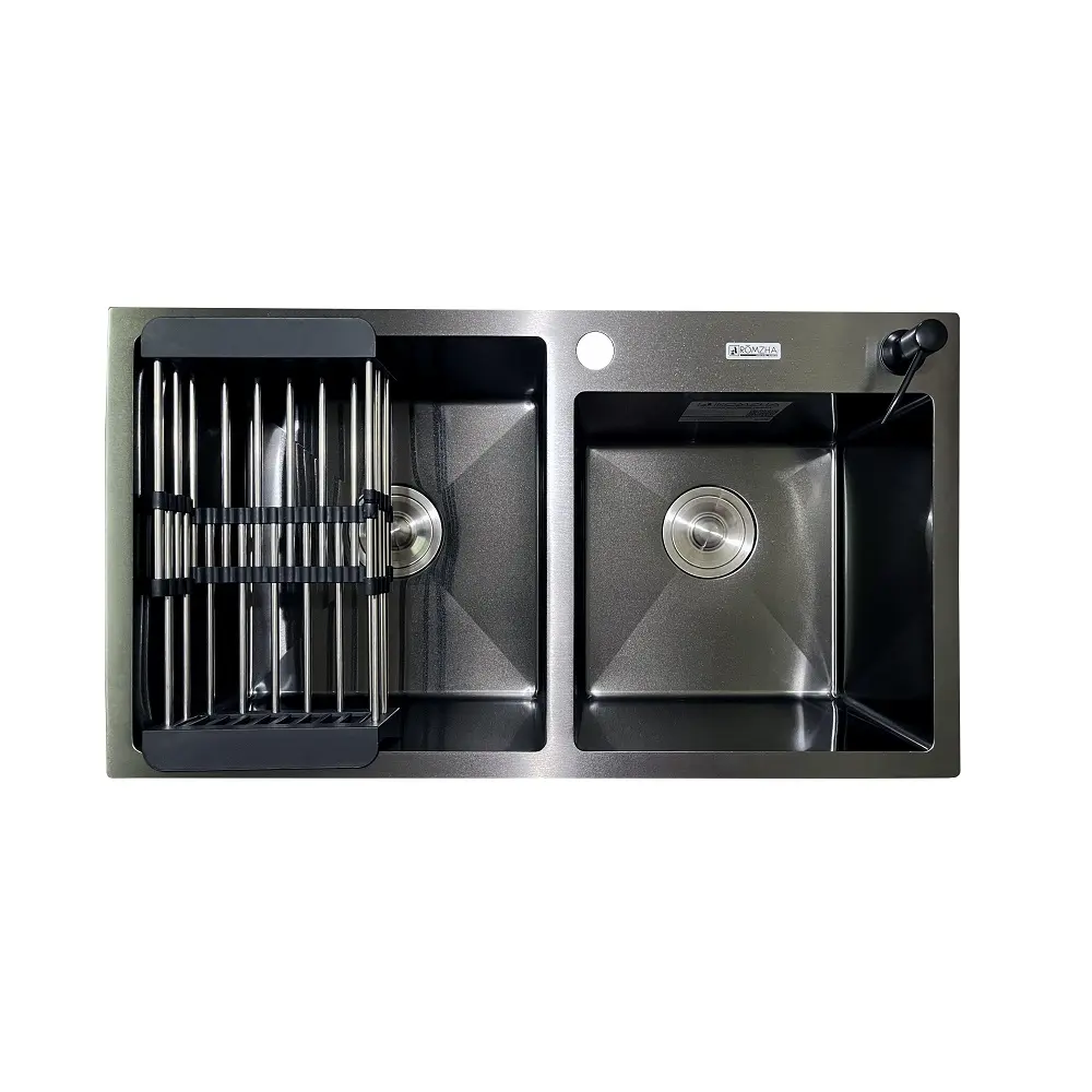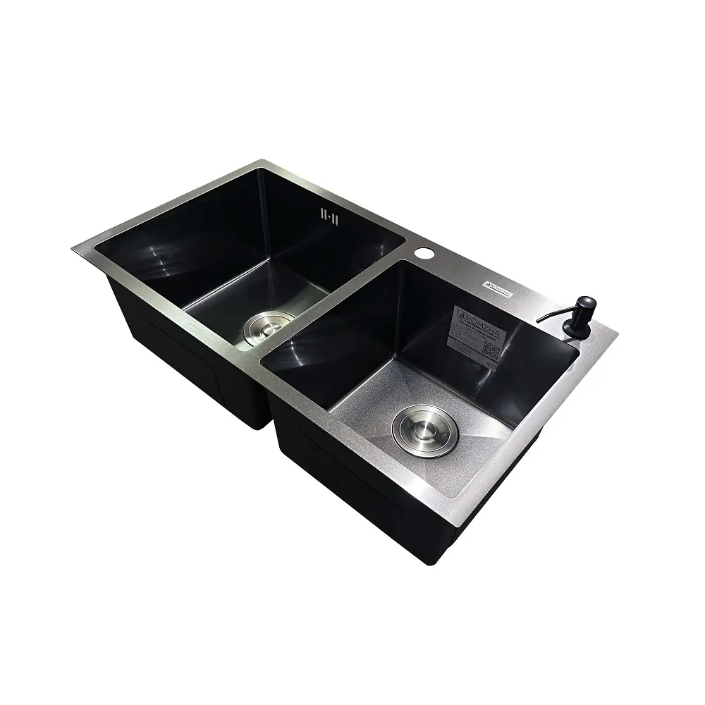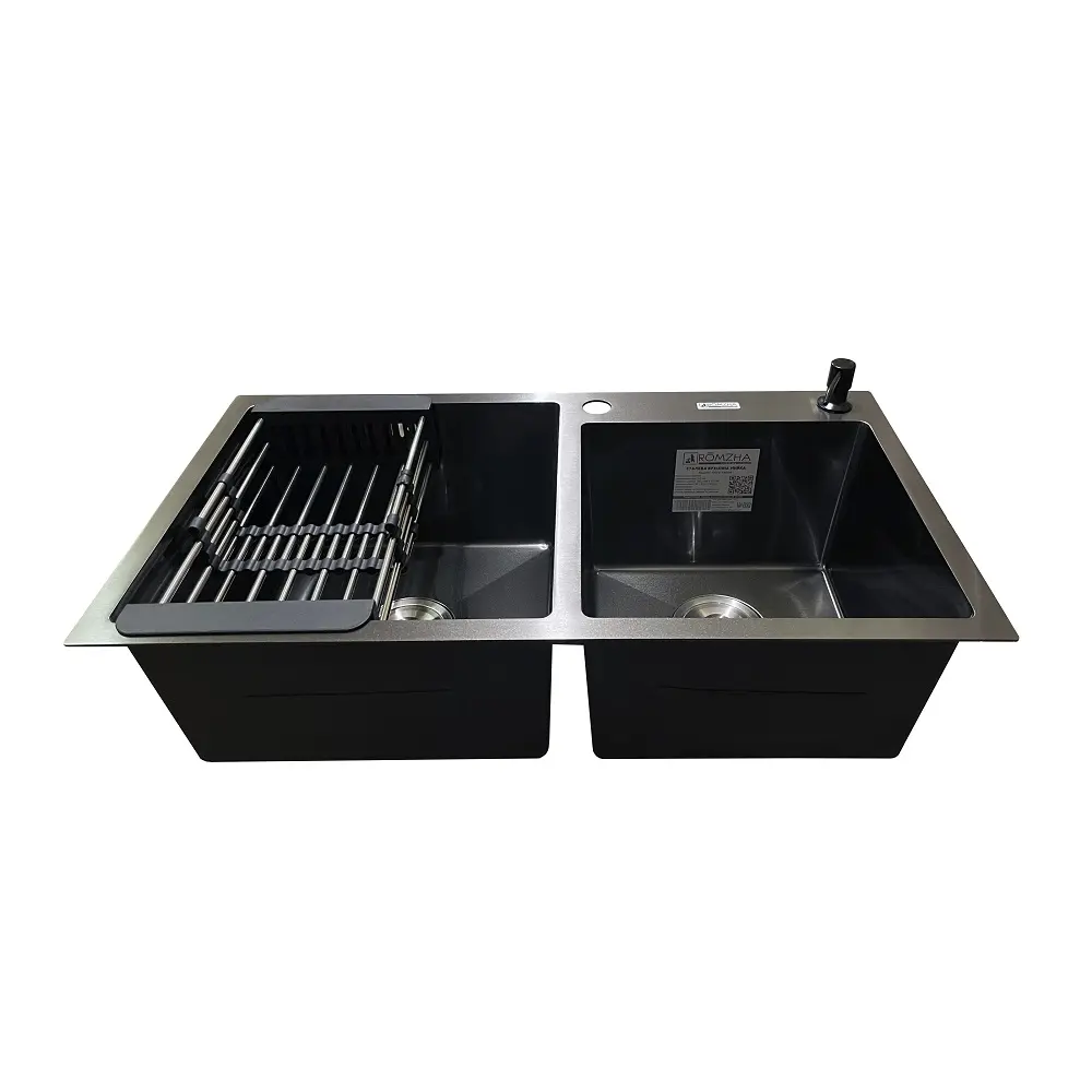 Комплектація: кухонна мийка, сифон, гофрований шлаг, корзина з нержавіючої сталі та дозатор рідких миючих засобів