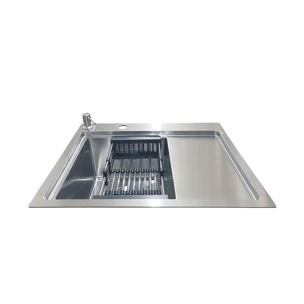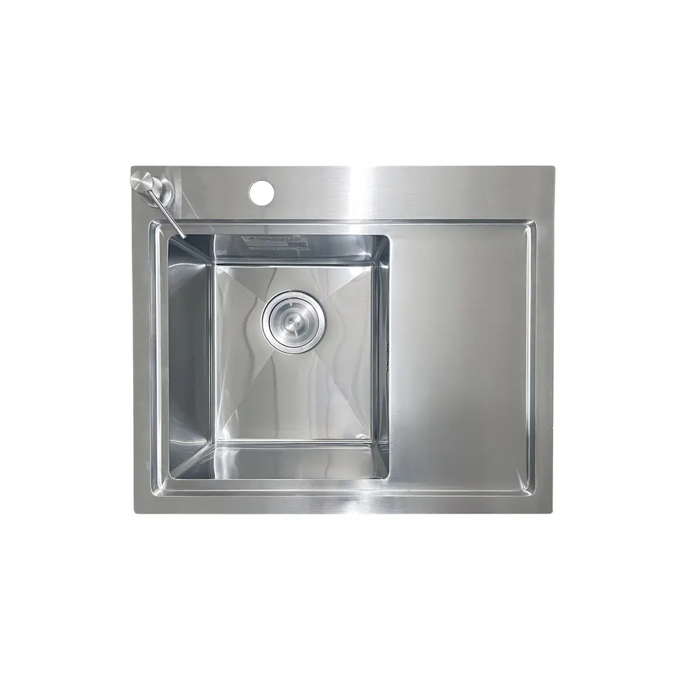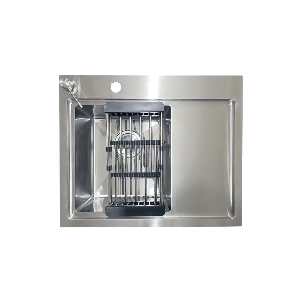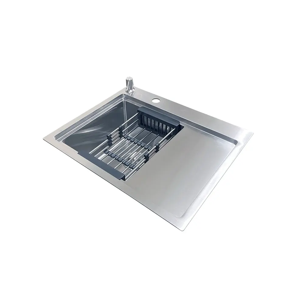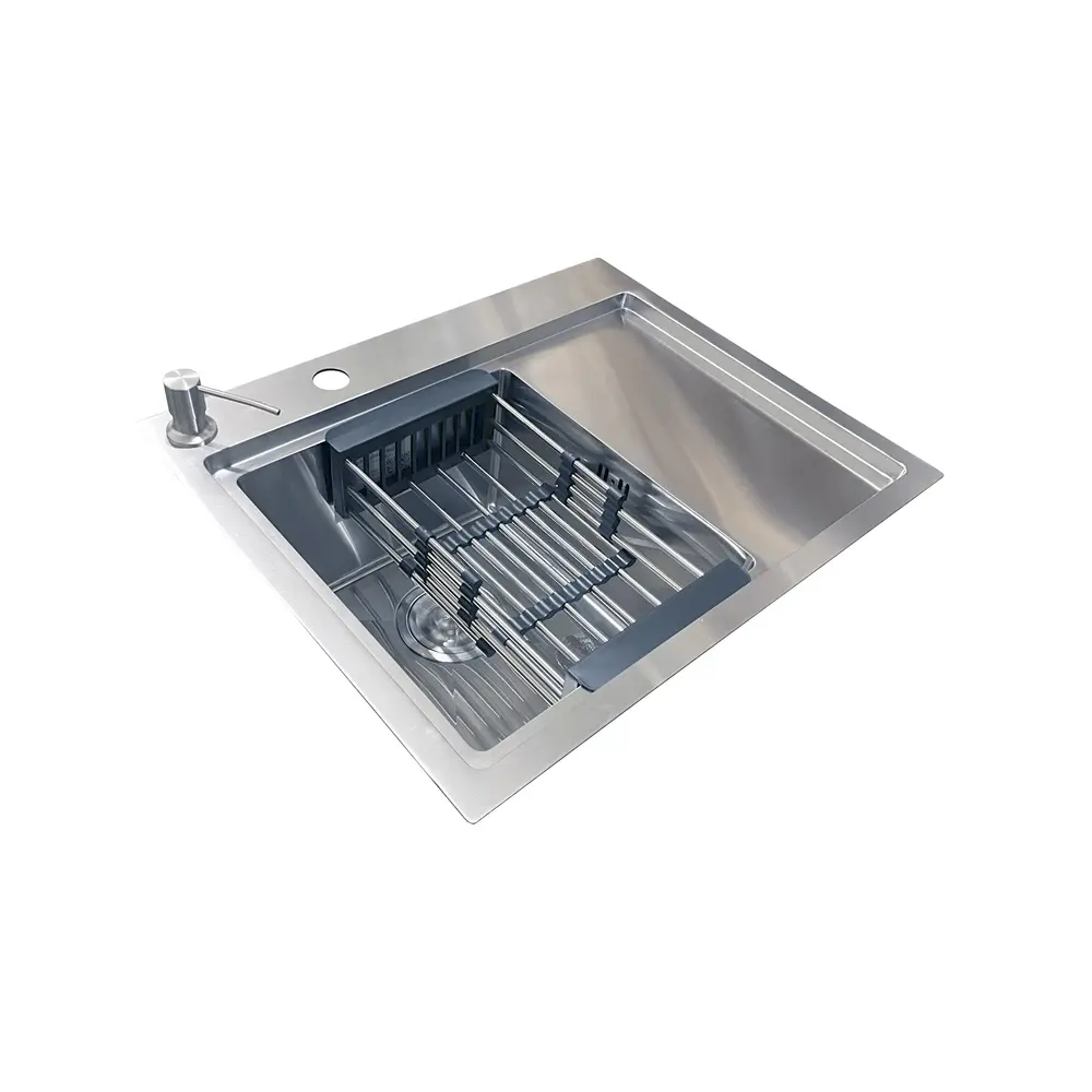 Комплектація: кухонна мийка, сифон, армованний гофро-шланг, корзина з нержавіючої сталі та дозатор для рідкого миючого засобу