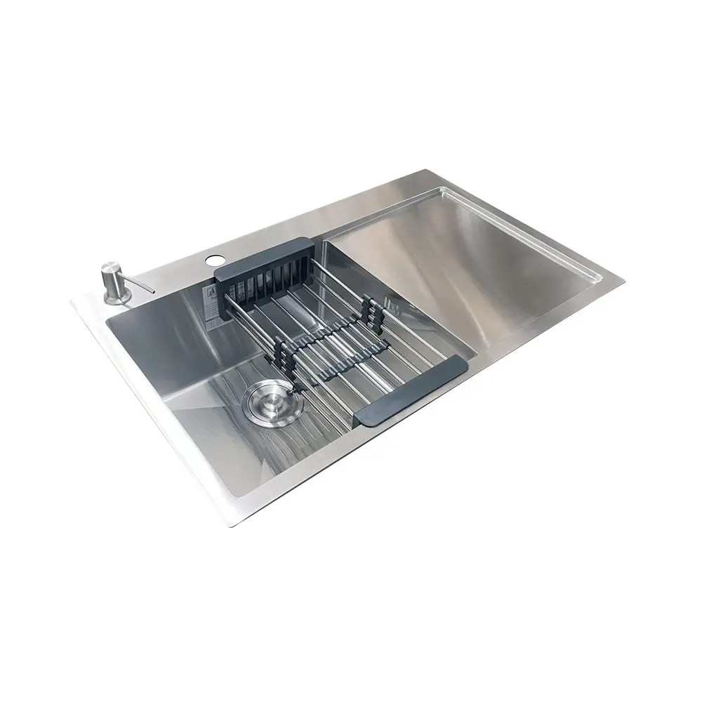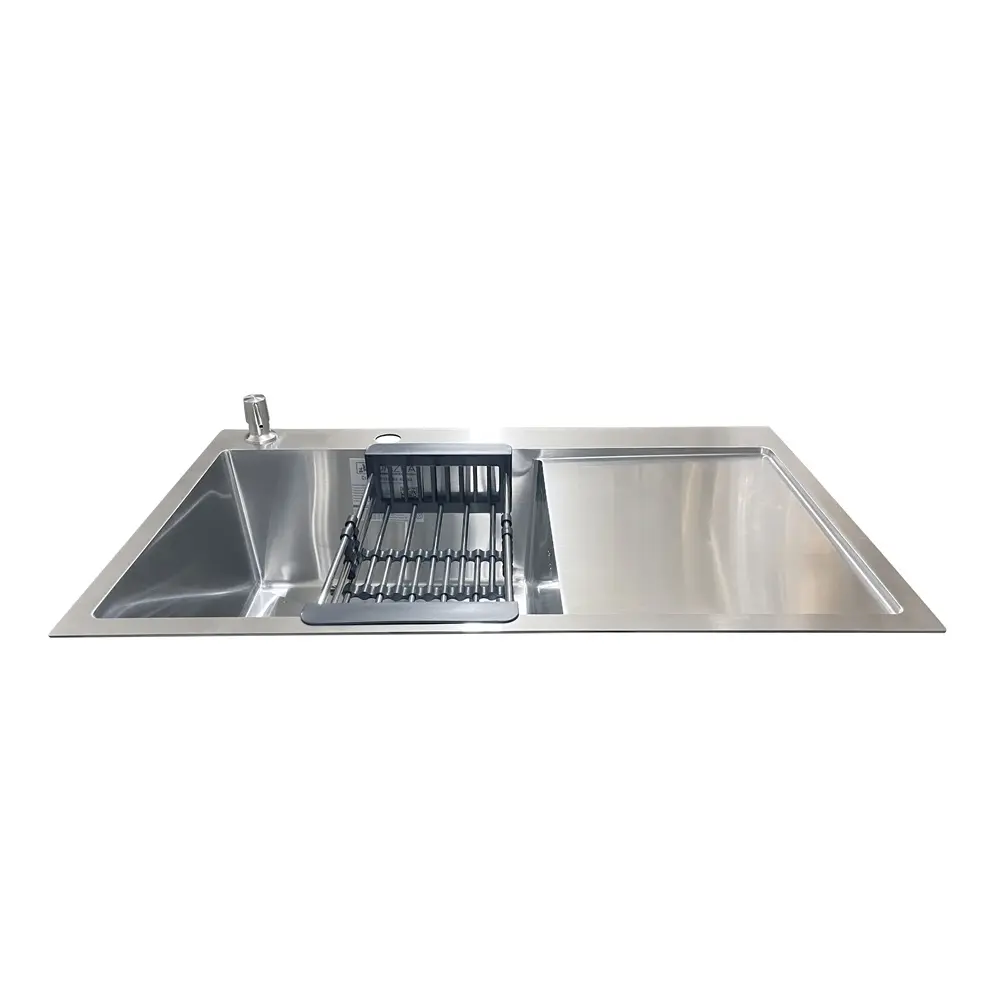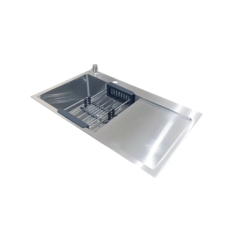 Комплектація: кухонна мийка, сифон, армованний гофро-шланг, корзина з нержавіючої сталі та дозатор для рідкого миючого засобу