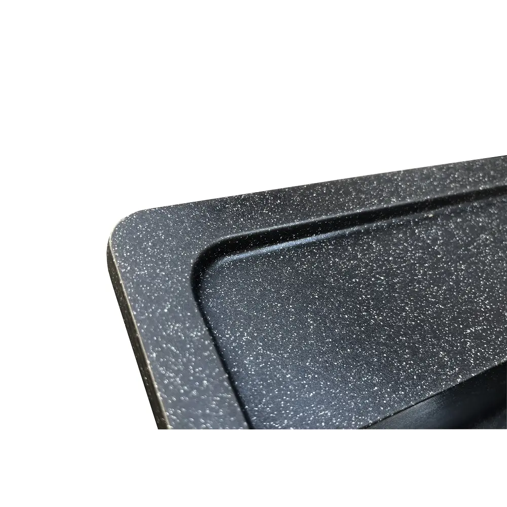 У процесі виробництва мийок Romzha концентрація кварцу на поверхні раковин збільшується, а акрилова смола зменшується. Завдяки цьому всі корисні властивості граніту - а саме стійкість до подряпин і плям - виражаються на передній частині раковини. Саме там, де це потрібно