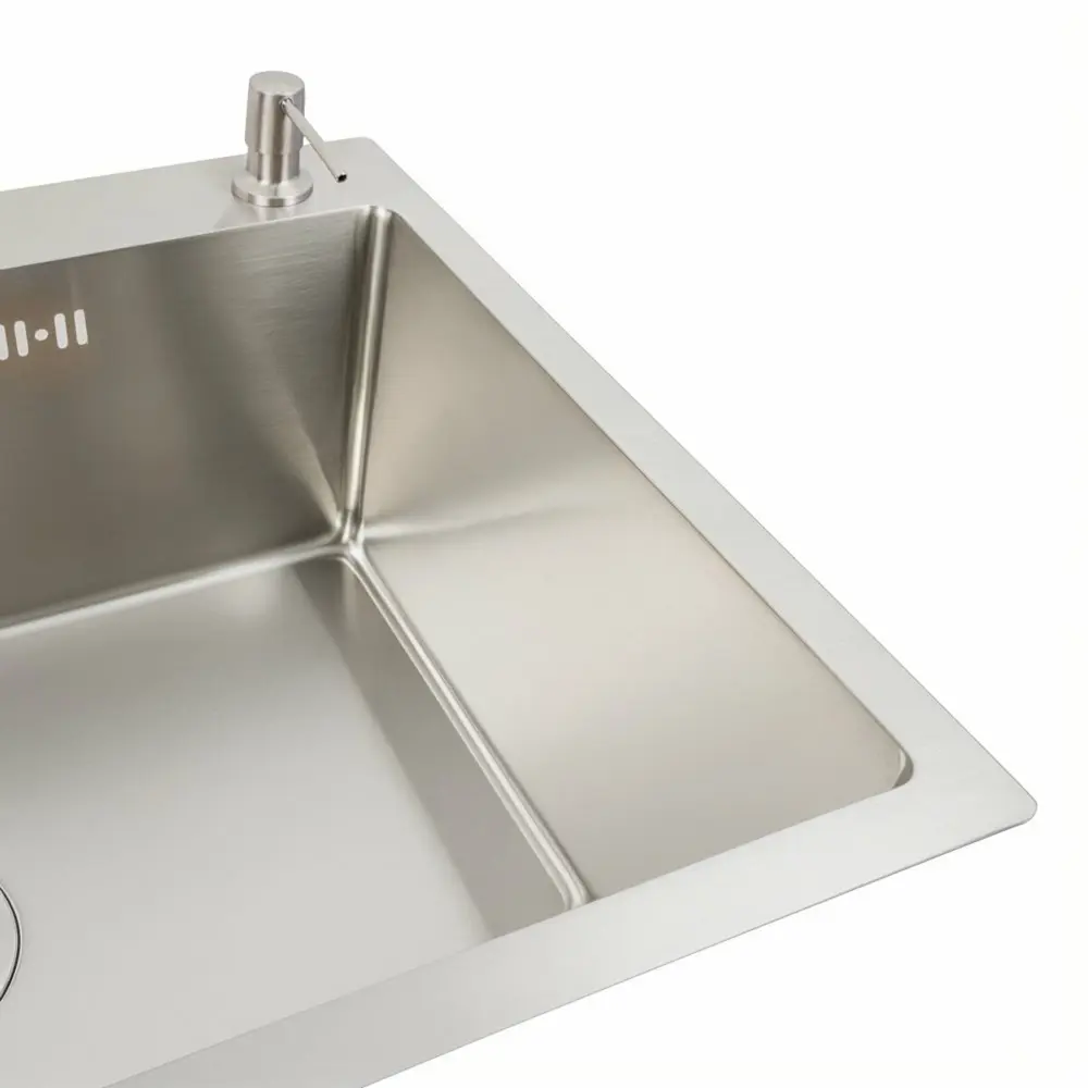 Кухонная мойка 70*50 Мойка нержавейка VALESO Handmade (сифон круглый, 3,0/0,8) – это отличное стильное решение для кухни средних размеров. Лаконичный дизайн прямоугольной формы хорошо подходит разным интерьерам кухни.