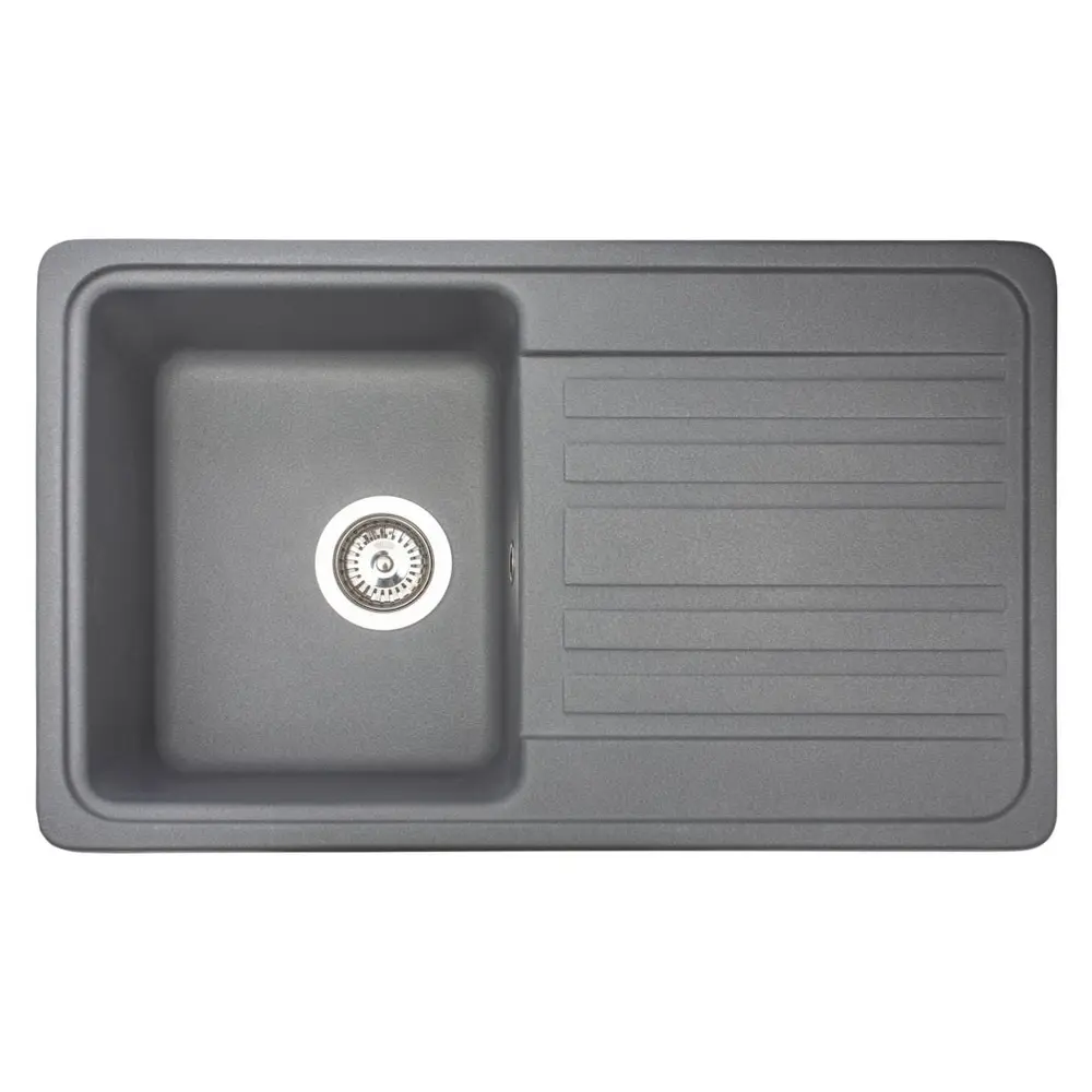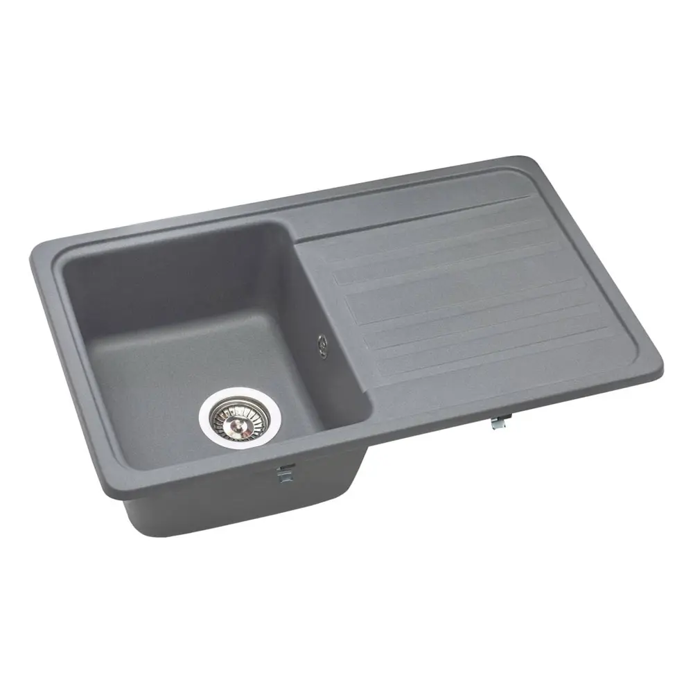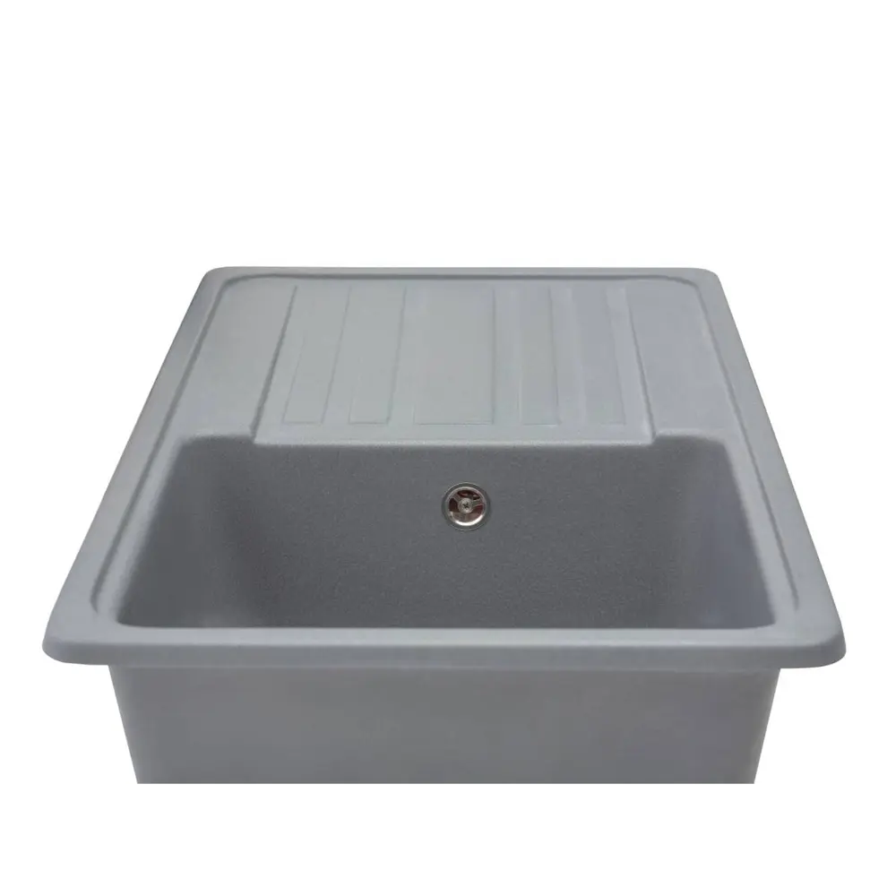 Кухонна мийка VERSAL gray на 80% складається з кварцевого піску та на 20% з поліефірної смоли, що забезпечує міцність цього виробу. Кухонна мийка витримує перепади температур від -65 до +65°C та не підається впливу агресивних побутовик фарбників.