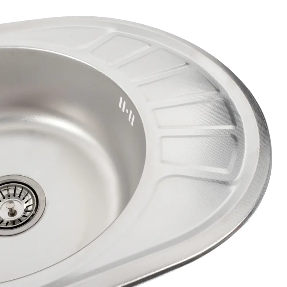 Кухонна мийка Platinum 5745 це оптимальне рішення для кухні невеликих та середніх розмірів. Лаконічний дизайн овальної форми добре пасує різним інтер’єрам кухні, а крило сушки дозволить сушити посуд та ставити гаряче кухонне приладдя.