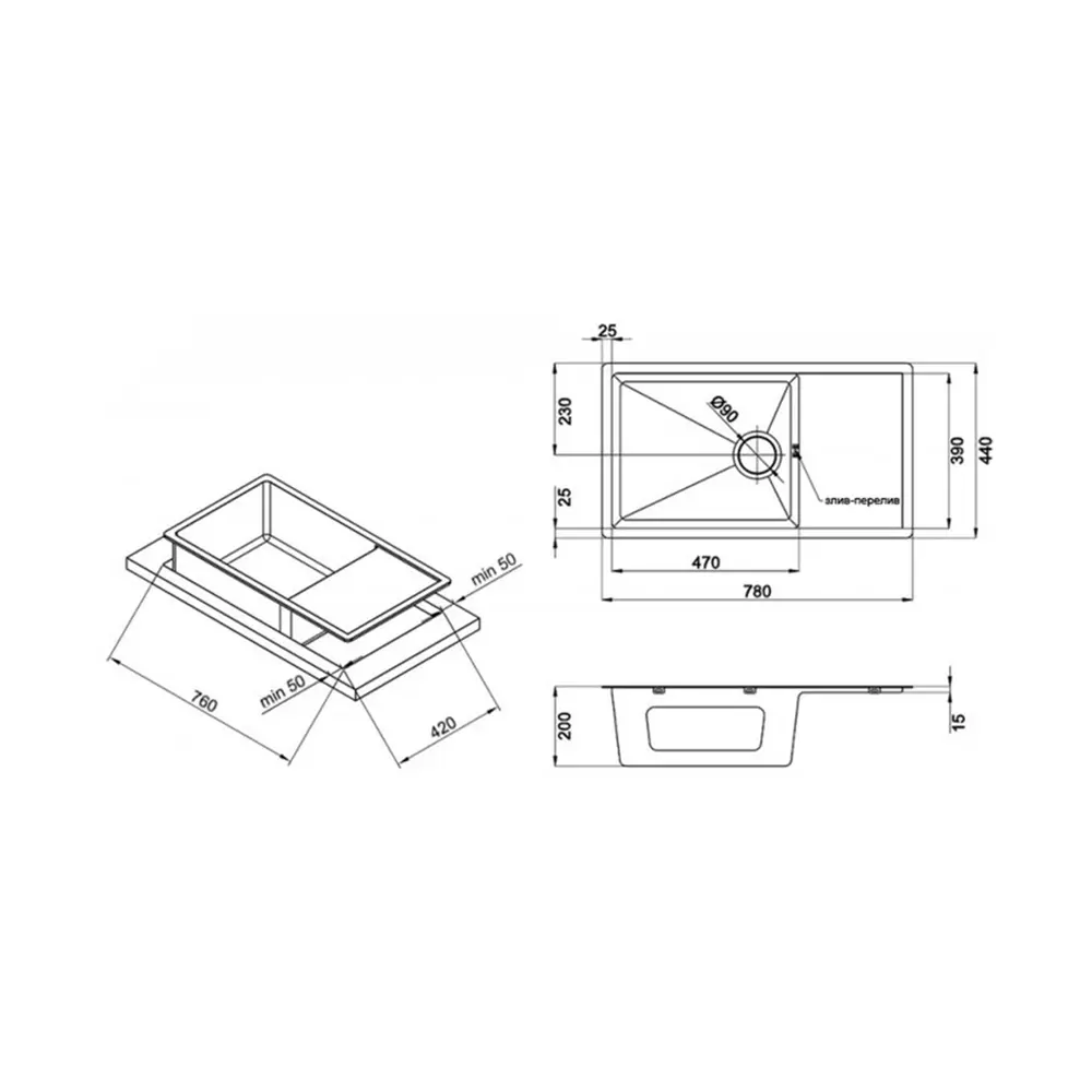 Мийка, сифон, злив-перелив, кошиковий вентиль, сушарка.