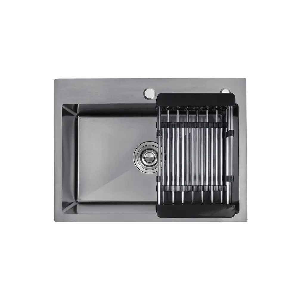 Мийка сподобалась. Чорно-графітовий колір дуже гарно вписався в мою кухню. В комплекті був кошик для сушіння посуду та сифон, що значно полегшило і встановлення і користування в подальшому. У сифона є пробка та ємність для збору сміття. По мийці - не шумить, не дзінчить, зроблена якісно. Доволі зручно користуватись. Метал товстий. Поверхня красива і в користуванні веде себе гарно, слідів від користування поки не помічено (3 місяці). Від білого осаду протираю і все.