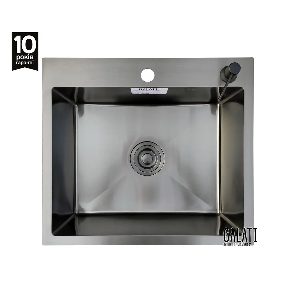 Комплектація: кухонна мийка, сифон, гофрований шлаг, корзина з нержавіючої сталі, дозатор для рідких засобів
