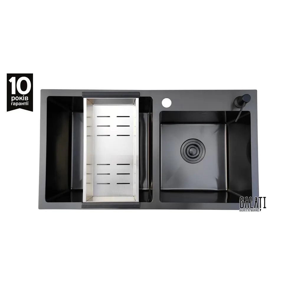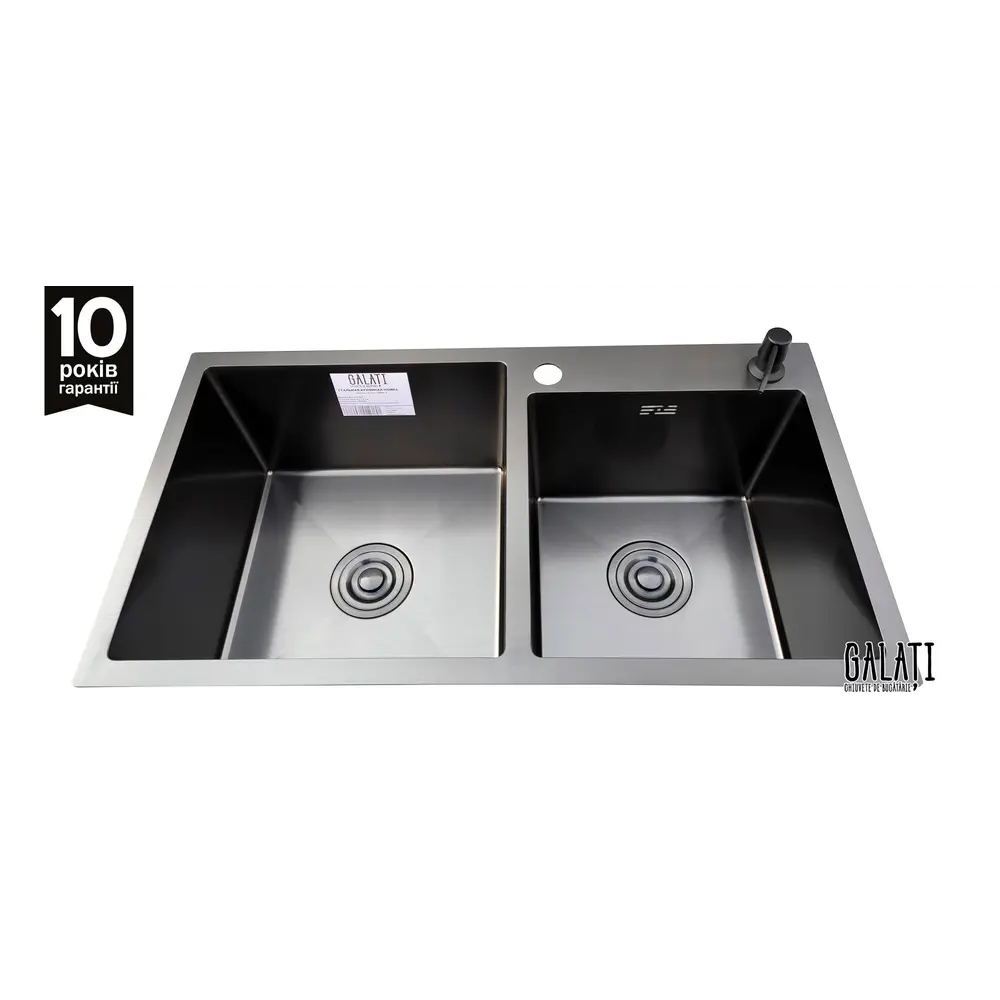 Комплектація: кухонна мийка, сифон, гофрований шлаг, корзина з нержавіючої сталі