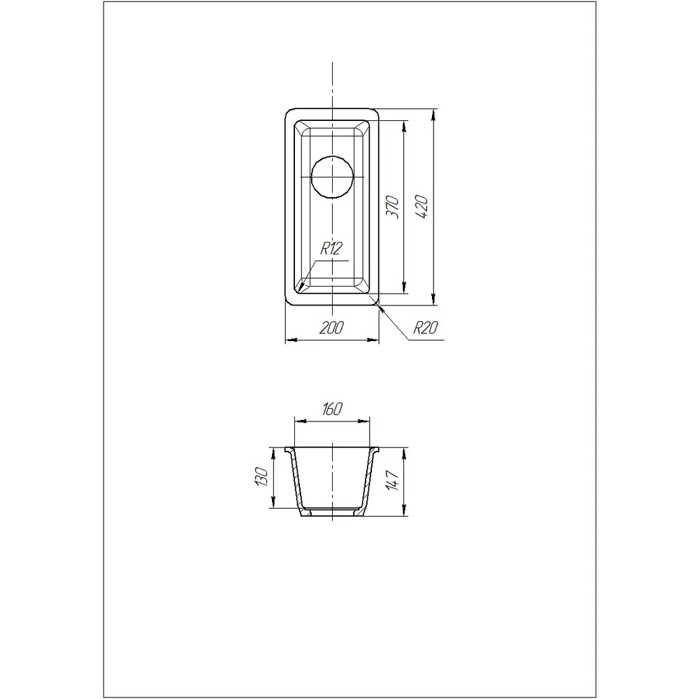 Габарити чаші: (ШхГхВ) 160 х 370 х 147 мм