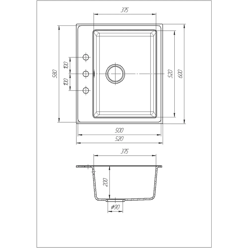 Габарити мийки (мм): 590х510х200