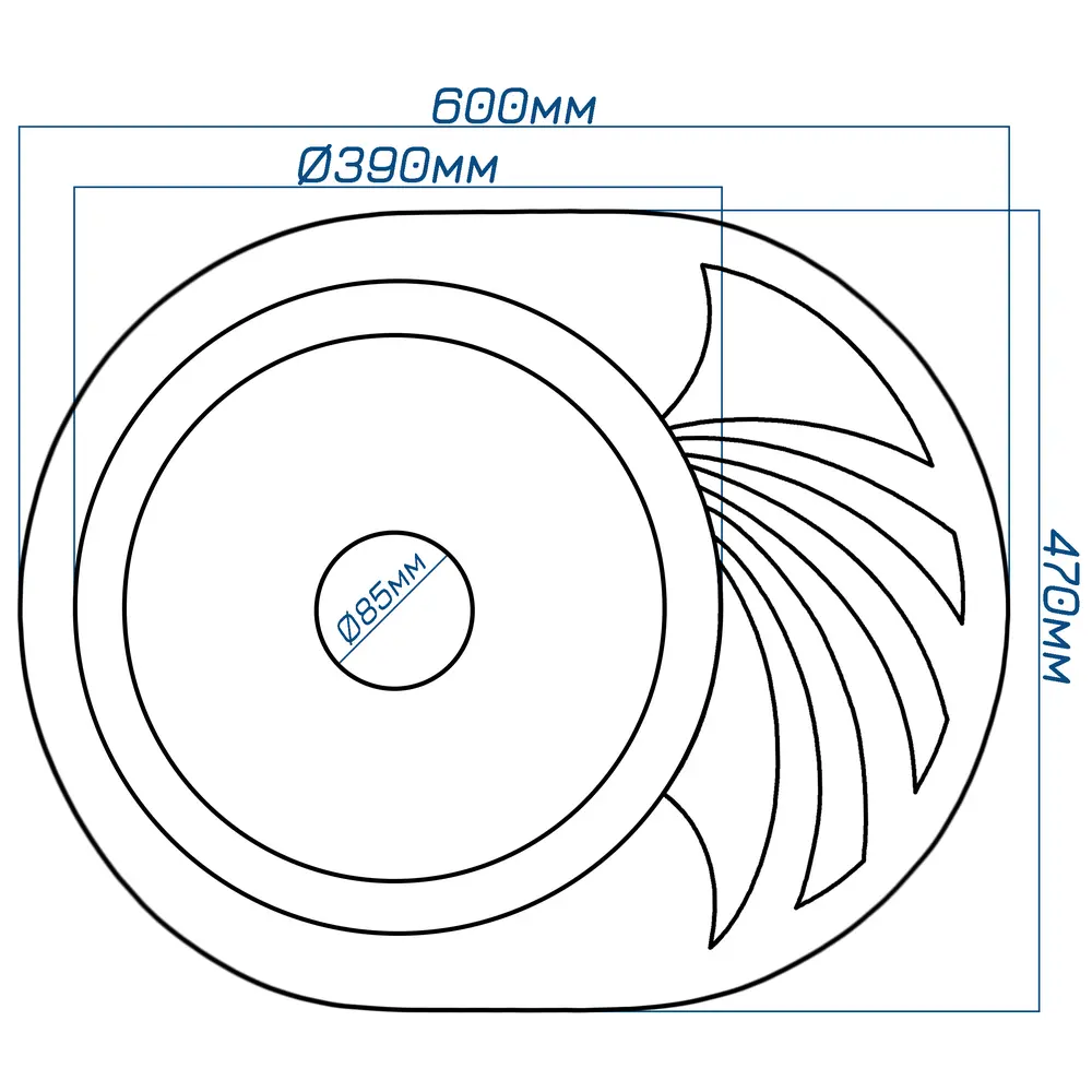 Розмір чаши (мм): 390х390х170
