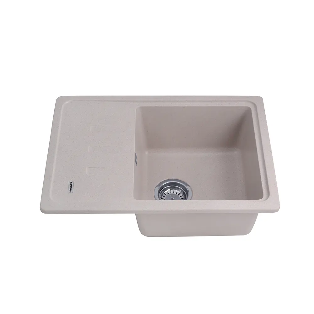 KRONER - це європейська якість, технологія та надійність. Наша лінійка кухонних мийок з якісного штучного каменю з матовою поверхнею це втілення в кожному виробі: дизайну, який не виходить із моди, великий вибір моделей та аксесуарів до них, практичність та фукціональність на будь-який смак. Виріб з такого матеріалу стійкий до механічних пошкоджень, а поверхня витримує температурні перепади.