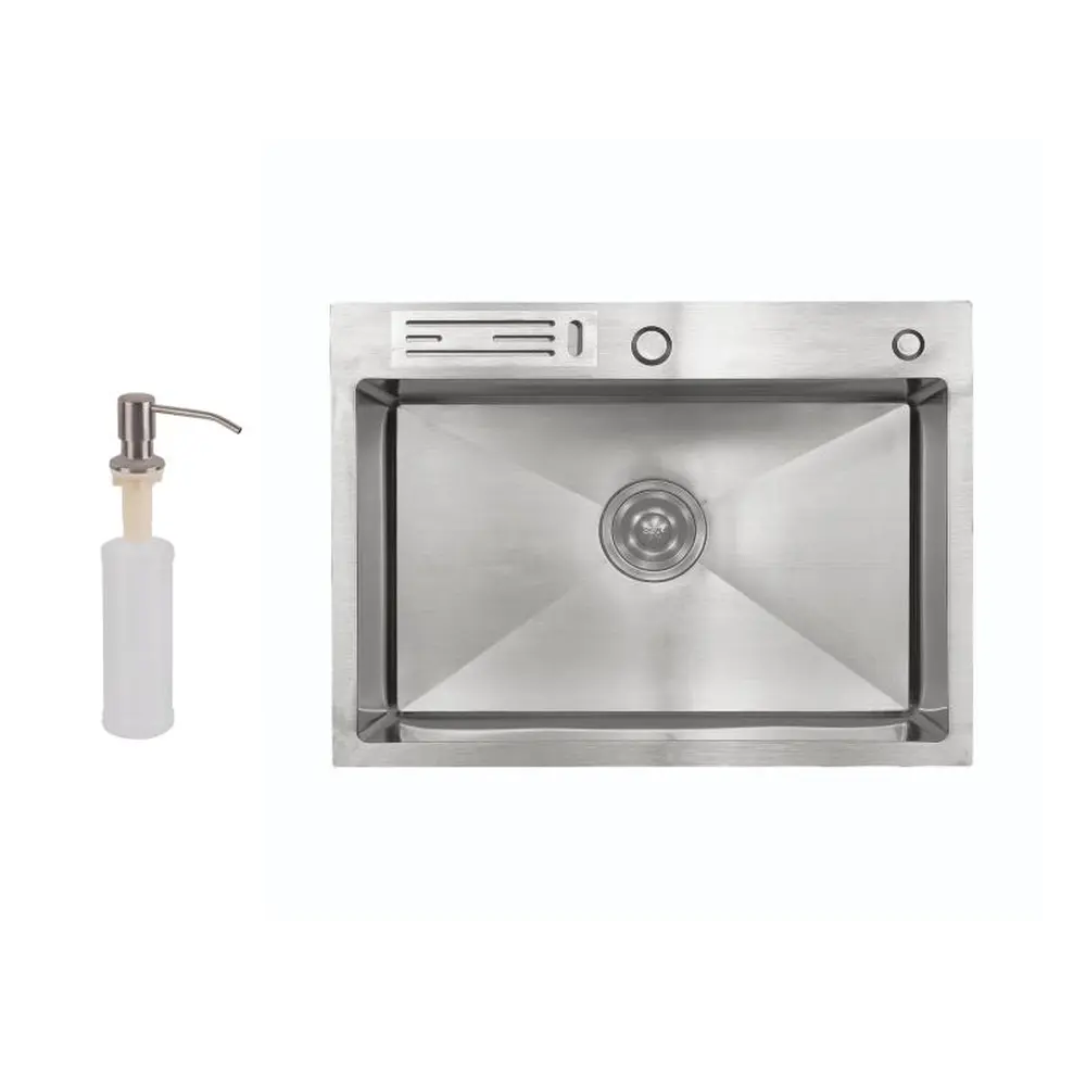 Кухонна мийка Lidz H6045K 3.0/1.0 мм Brush (LIDZH6045KBRU3010) з вбудованним тримачем для ножів