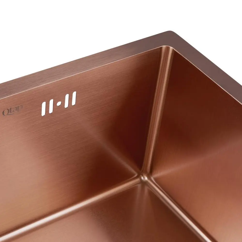 Кухонна мийка Qtap D4843BR 2.7/1.0 мм Bronze (QTD4843BRPVD10) виготовлена з високоякісної нержавіючої сталі харчової марки, тому виріб прослужить довгі роки. Варто відзначити сучасний дизайн який прикрасить будь-яку кухню і дозволить задовольнити найвищі вимоги, створюючи затишок у вашому домі! Мийка виконана у вигляді прямокутної чаші, монтується інтегрованим способом. Поверхня мийки досить легко очищується.