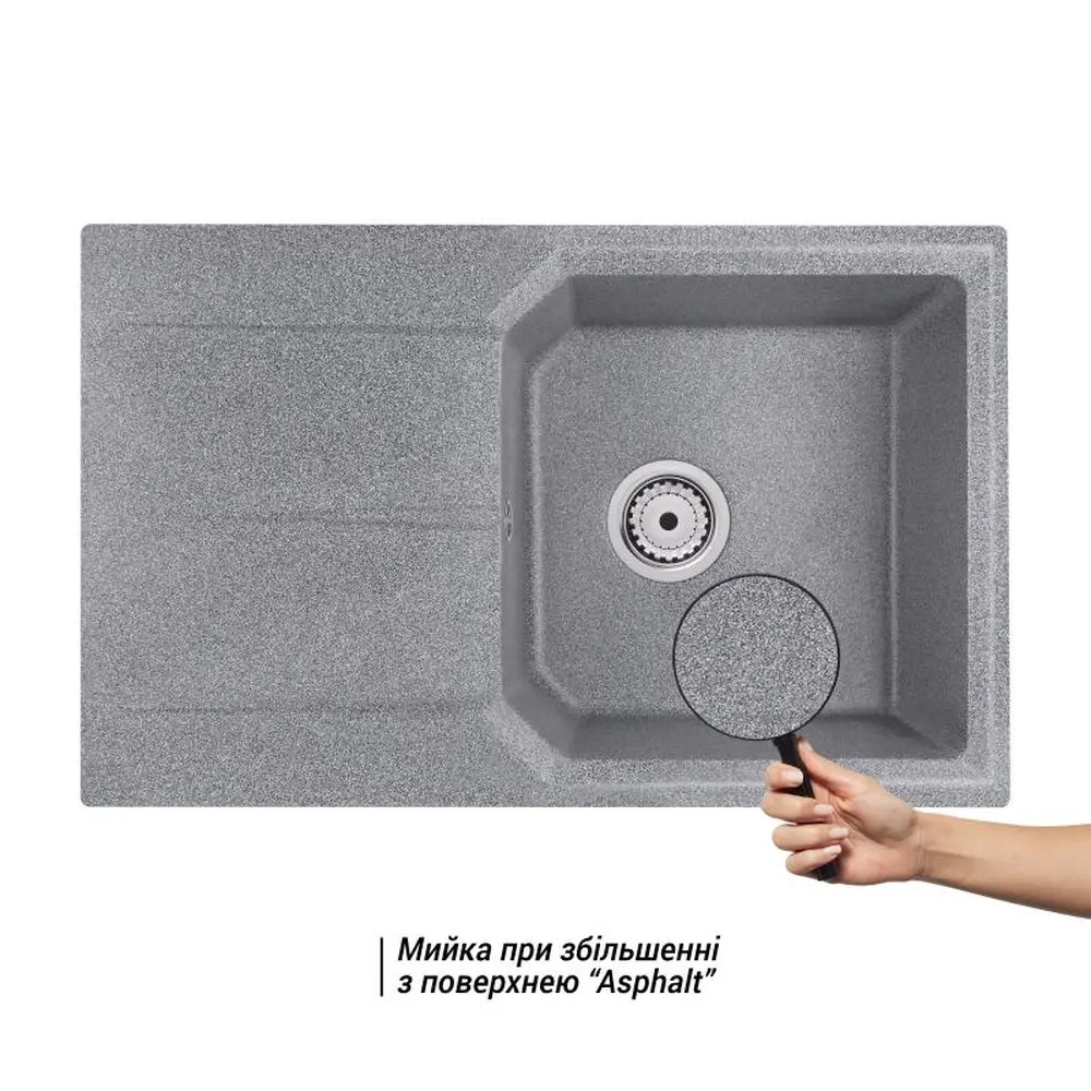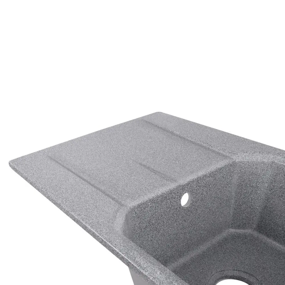 Кухонна мийка Qtap MS 7849 Asphalt (QTMS7849ASP) виготовлена з якісного штучного каменю з матовою поверхнею. Виріб з такого матеріалу досить стійкий до механічних пошкоджень, а поверхня витримує температурні перепади. Така мийка досить просто очищується від забруднень. Вона має містку прямокутну чашу, зручне крило для сушіння посуду та отвір під перелив. Виріб монтується урізним способом в отвір у стільниці.