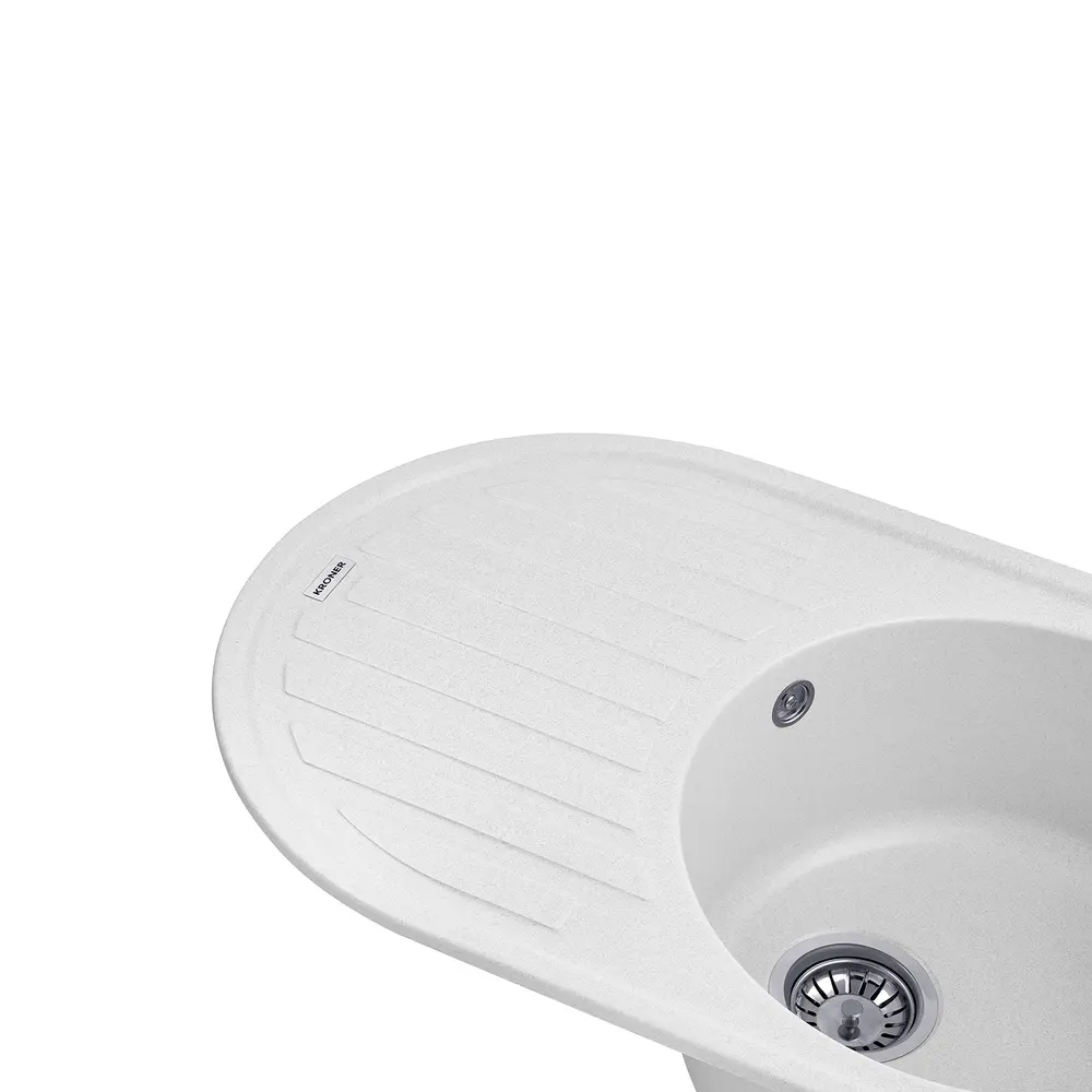 KRONER - це європейська якість, технологія та надійність. Наша лінійка кухонних мийок з якісного штучного каменю з матовою поверхнею це втілення в кожному виробі: дизайну, який не виходить із моди, великий вибір моделей та аксесуарів до них, практичність та фукціональність на будь-який смак. Виріб з такого матеріалу стійкий до механічних пошкоджень, а поверхня витримує температурні перепади.