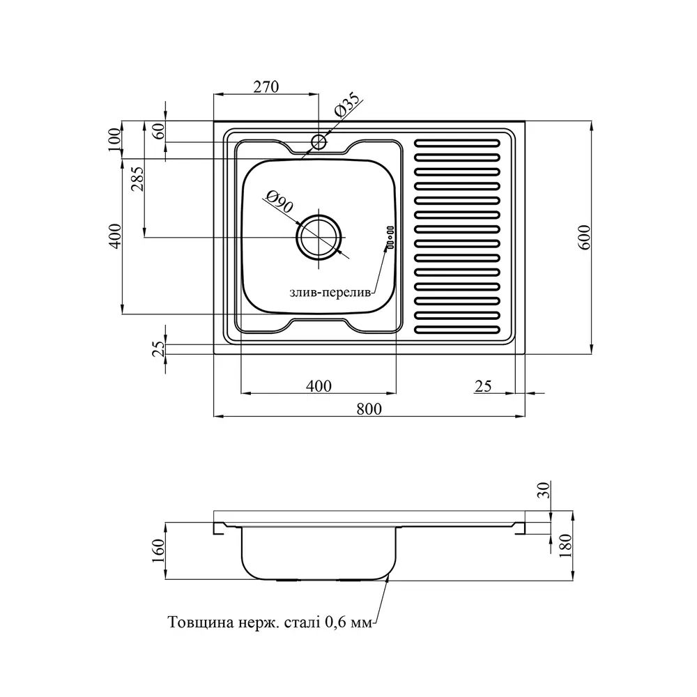 Мийка, сифон, злив-перелив, кошиковий вентиль.