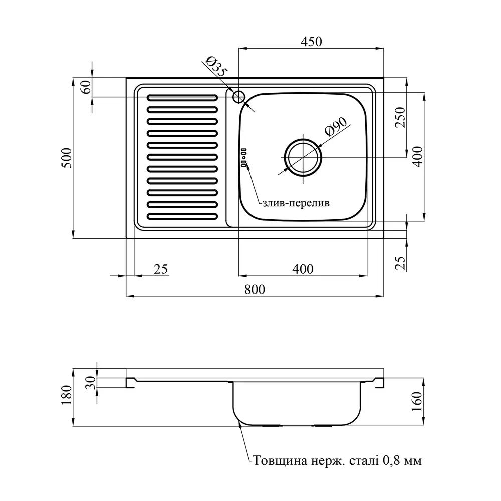 Діаметр зливу, мм