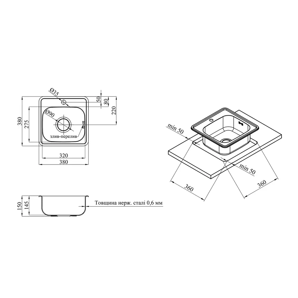 Мийка, сифон, злив-перелив, кошиковий вентиль, стрічка ущільнююча, кріплення.