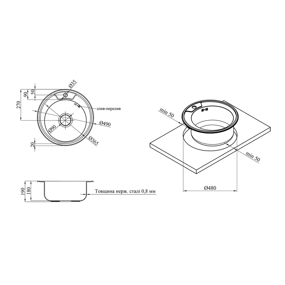 Діаметр зливу, мм