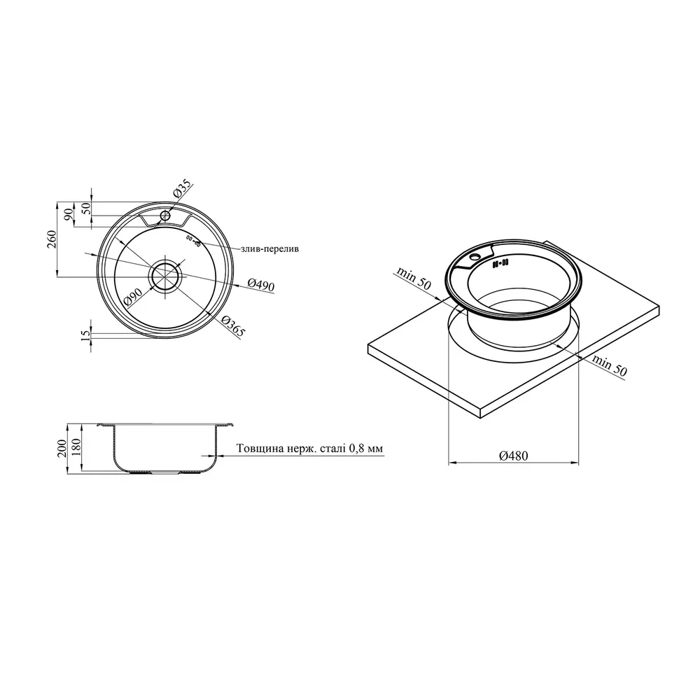 Діаметр зливу, мм