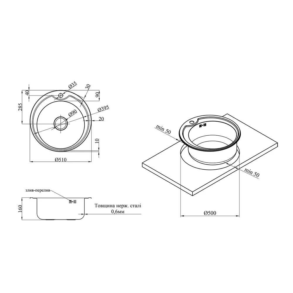 Діаметр зливу, мм