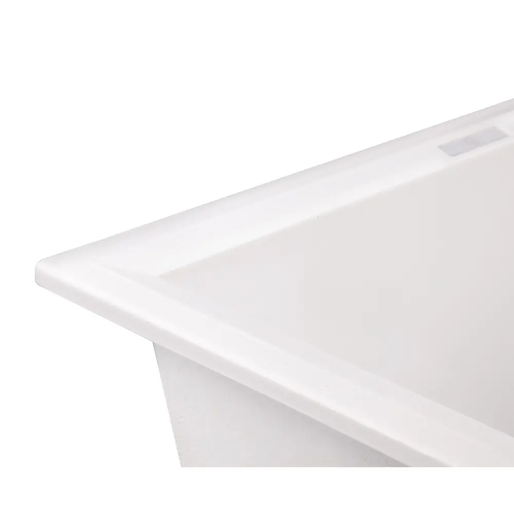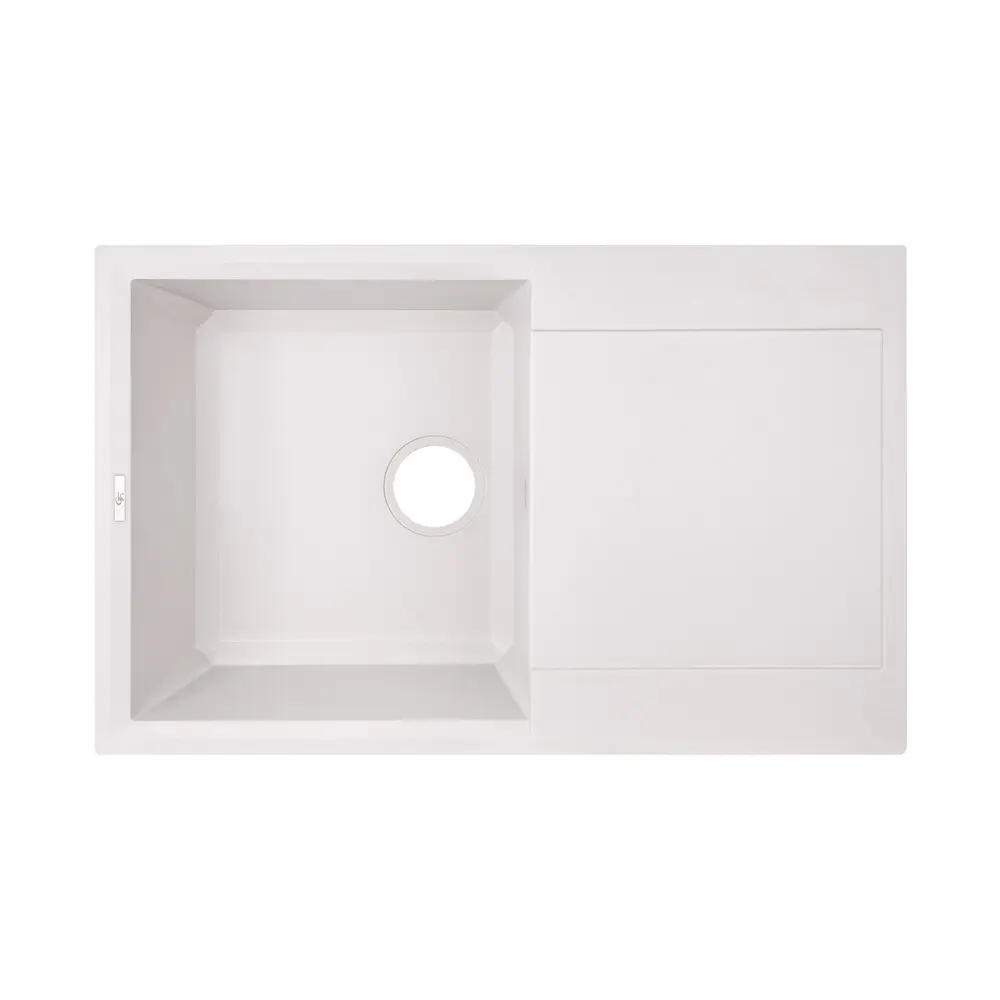 Кухонная мойка GF (WHI-01) 790x495 / 230 изготовлена из высококачественного гранита, имеет белую матовую поверхность, поэтому будет прекрасно смотреться со смесителем того же цвета. Отличное качество и дизайн мойки удовлетворят найвибагливи пожелания и создадут уют в вашем доме! Форма мойки прямоугольная с острыми углами. Изделие выполнено из рабочей чашей с отверстием слив-перелив и втиснутым для стока воды плавящимся крылом для сушки посуды или размораживания продуктов. На борт нанесен фирменный логотип производителя.