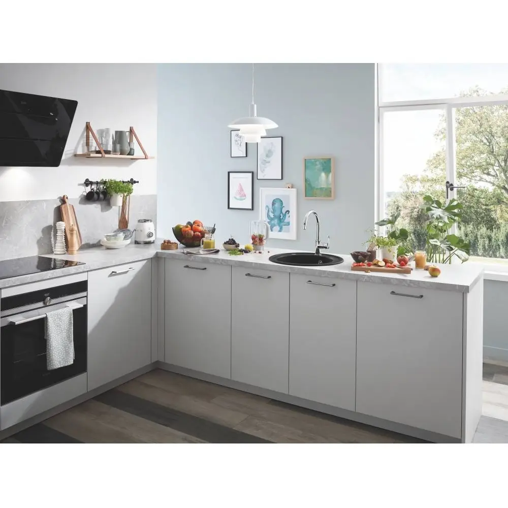 Кухонная мойка Grohe Sink 31656AP0 изготовлена из кварцевого композита, который состоит из 80% кварца и 20% акриловой смолы и отвердителя. Благодаря системе GROHE QuickFix установления мойки не возьмет много времени и не требует дополнительного оборудования. Мойка выполнена в виде чаши с отверстием слив-перелив и отверстием под смеситель. Изоляция GROHE Whisper на нижней части мойки уменьшает шум, а обработка Granite Black не реагирует на ультрафиолетовое излучение, поэтому сохраняет свой глубокий оттенок.