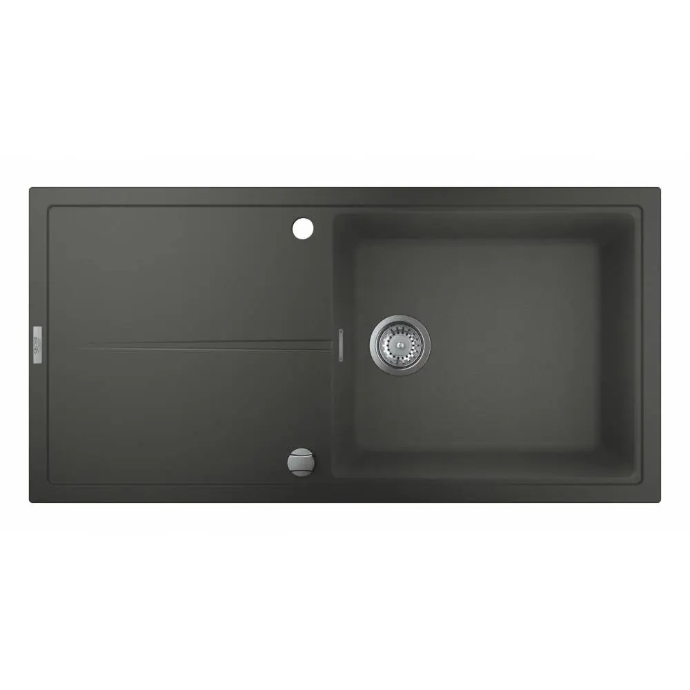 Кухонная мойка Grohe Sink 31641AT0 изготовлена из кварцевого композита, который состоит из 80% кварца и 20% акриловой смолы и отвердителя. Благодаря системе GROHE QuickFix установления мойки не возьмет много времени и не требует дополнительного оборудования. Мойка выполнена из рабочей чашей, отверстием для смесителя и крылом для сушки посуды или размораживания продуктов. Изоляция GROHE Whisper на нижней части мойки уменьшает шум, является автоматический мусоросборник с дистанционным управлением.
